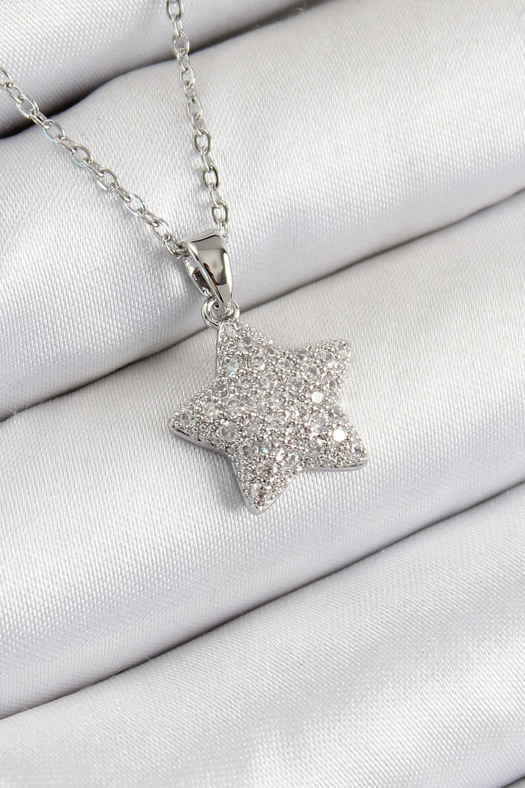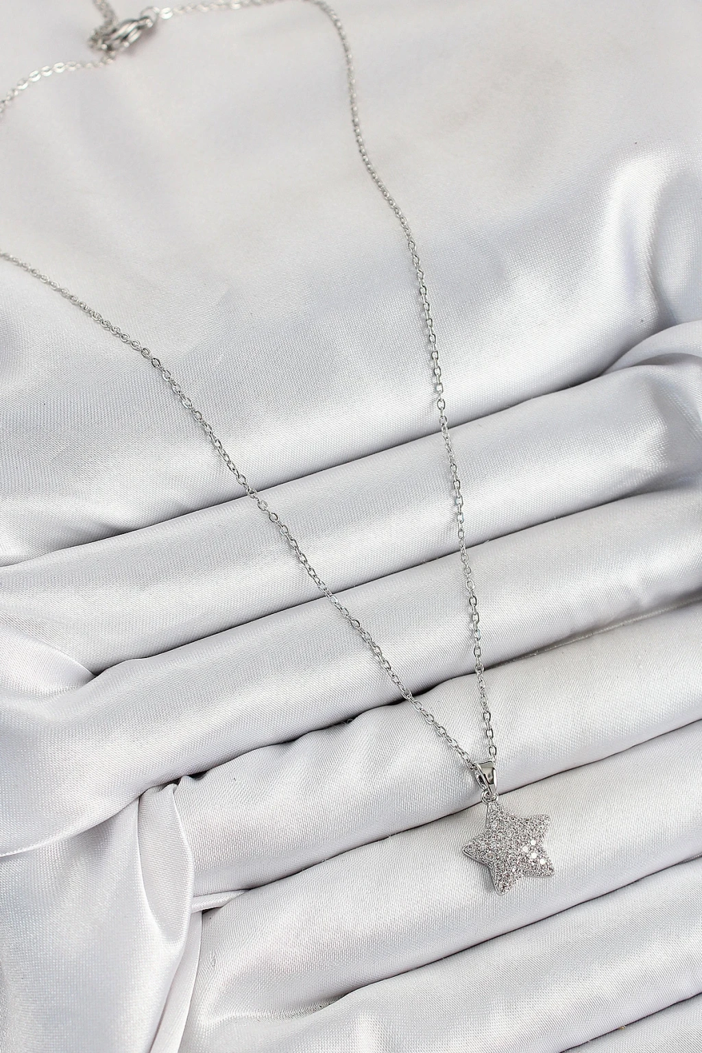 316L Çelik Zirkon Taşlı Yıldız Model Gümüş Renk Kadın Kolye - TJ-BKO10352