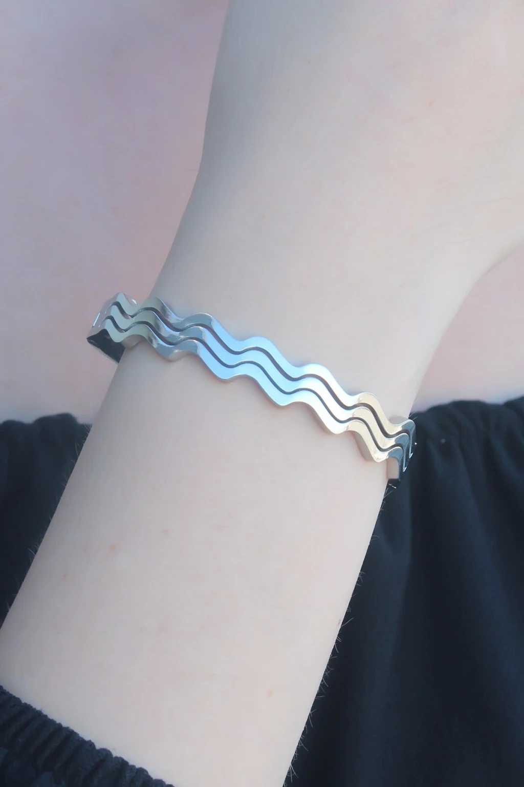 316L Kararmaz Çelik Gümüş Renk Dalga Model Kelepçe Kadın Bileklik - TJ-BB4636