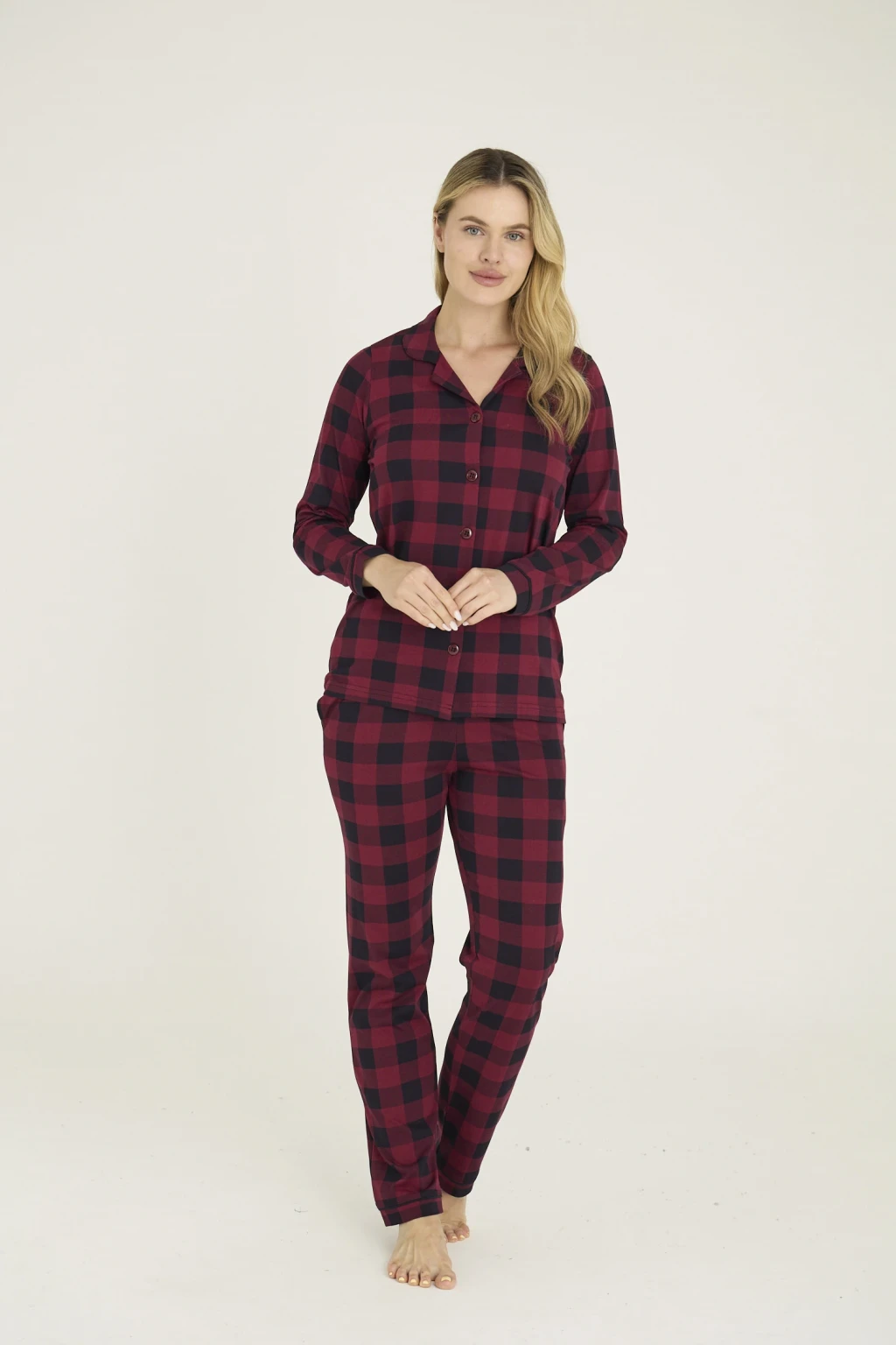 %100 Pamuklu Uzun Kol Düğmeli Gömlek Ve Ekose Pantolon Pijama Takımı