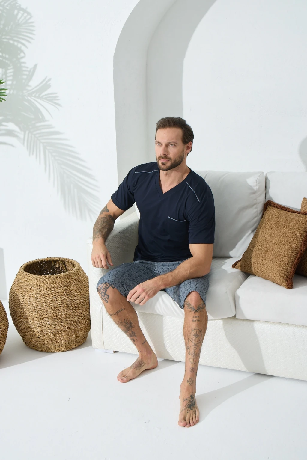 9454 Erkek V Yaka Kısa Kol Kapri Takım