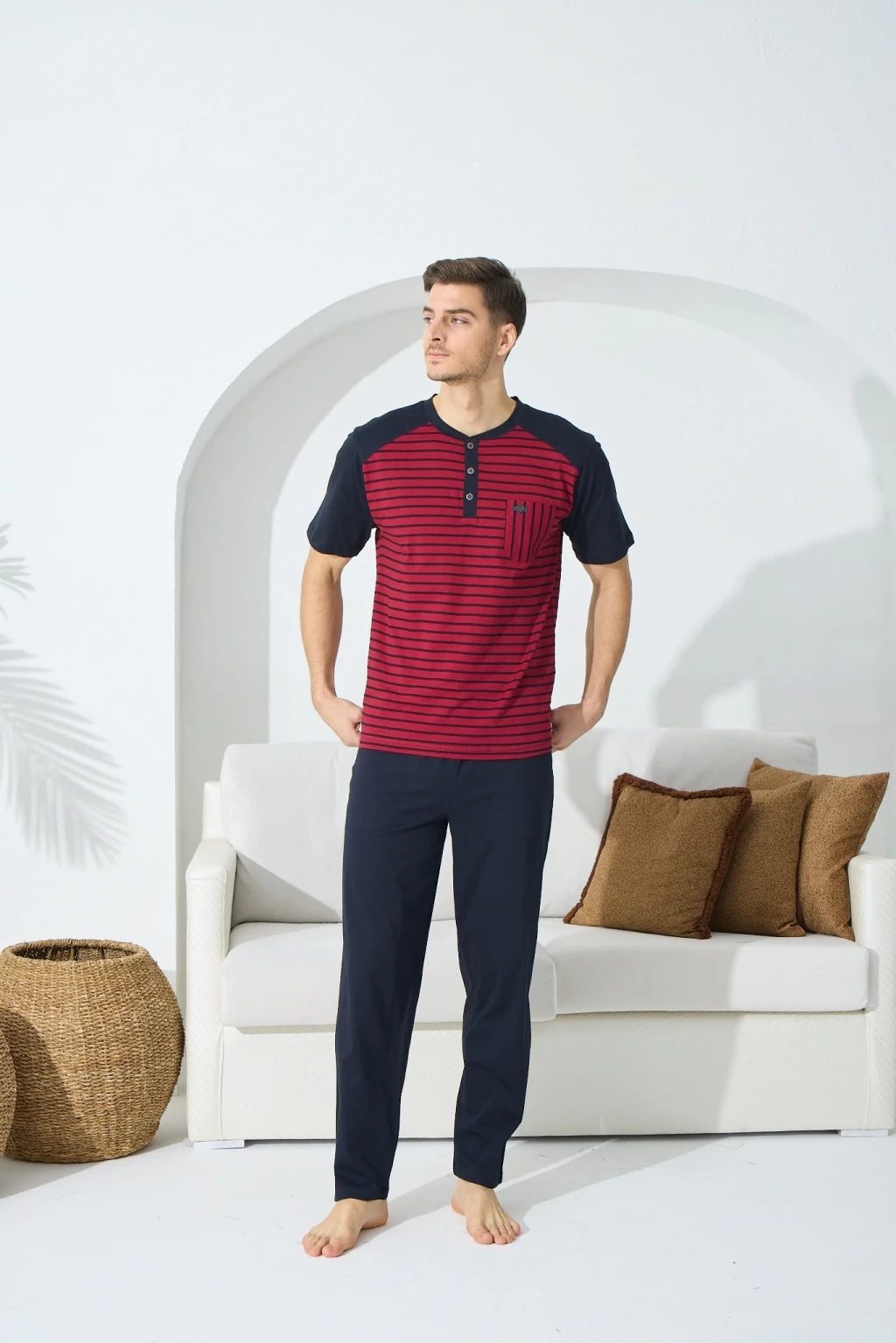 9511 Erkek Midi Yaka Kısa Kol Pijama Takım