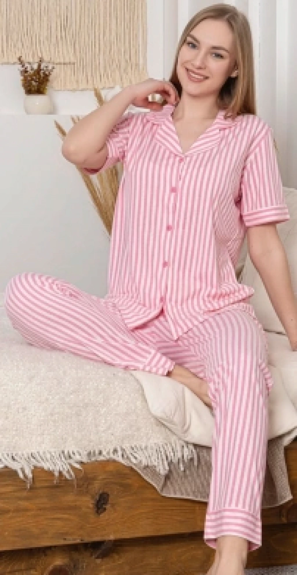 Alissa 6294 Kadın Çizgili Patlı Pijama Takımı