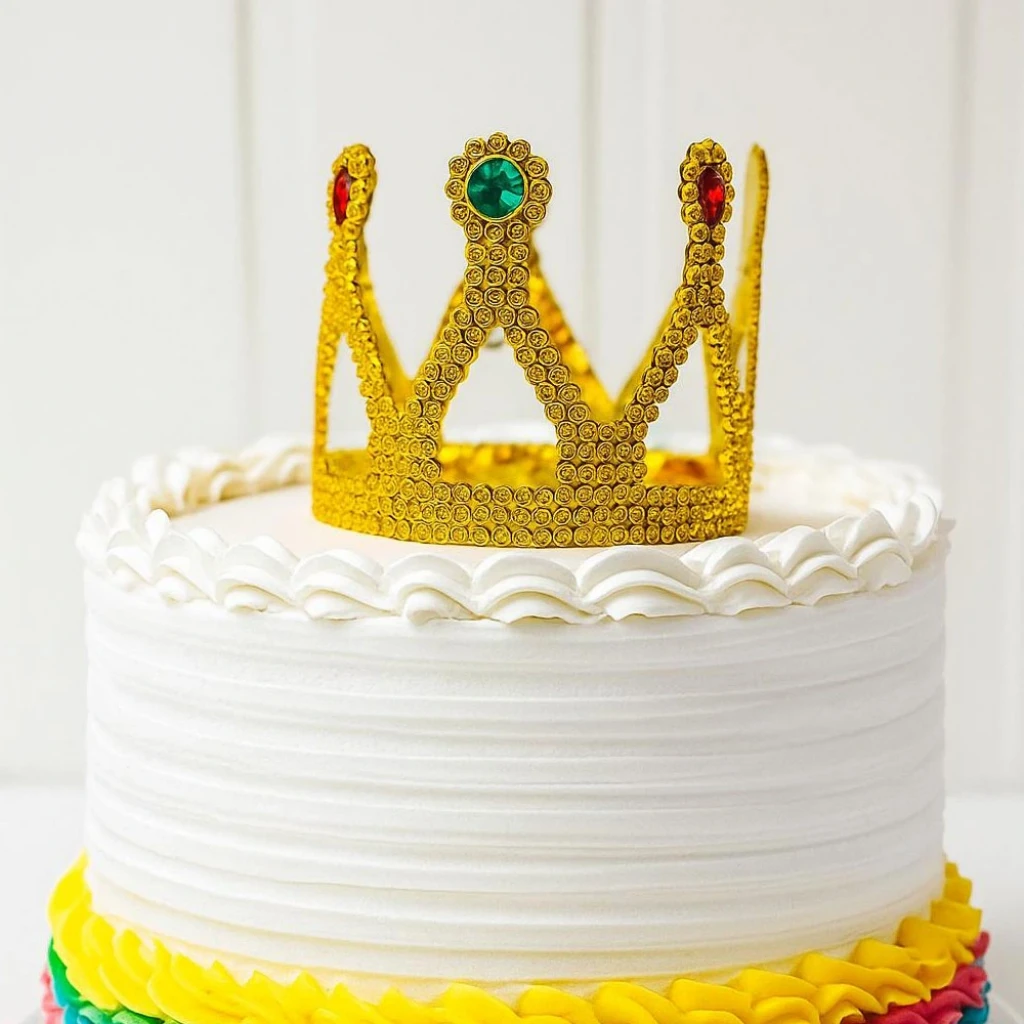 Altın Işıltılı Pasta Tacı Pasta Üstü Taç Plastik Malzeme 8x8 cm