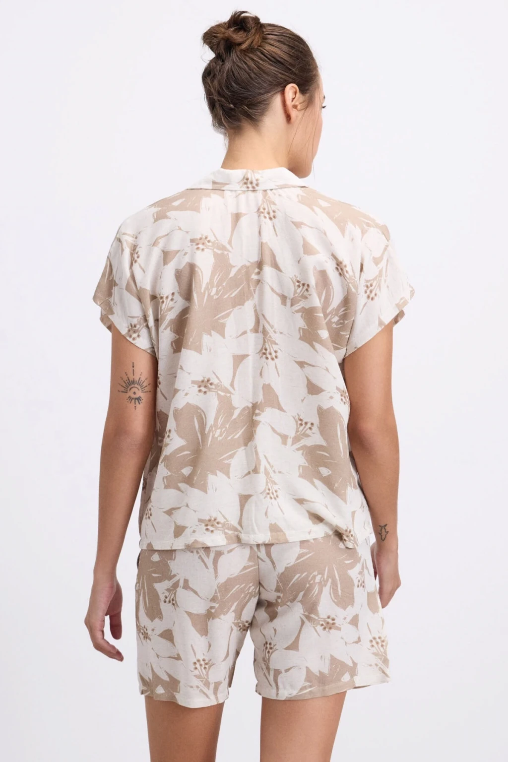 Kadın Ekru Çiçek Baskılı Şortlu Gecelik Pijama Takımı 5047