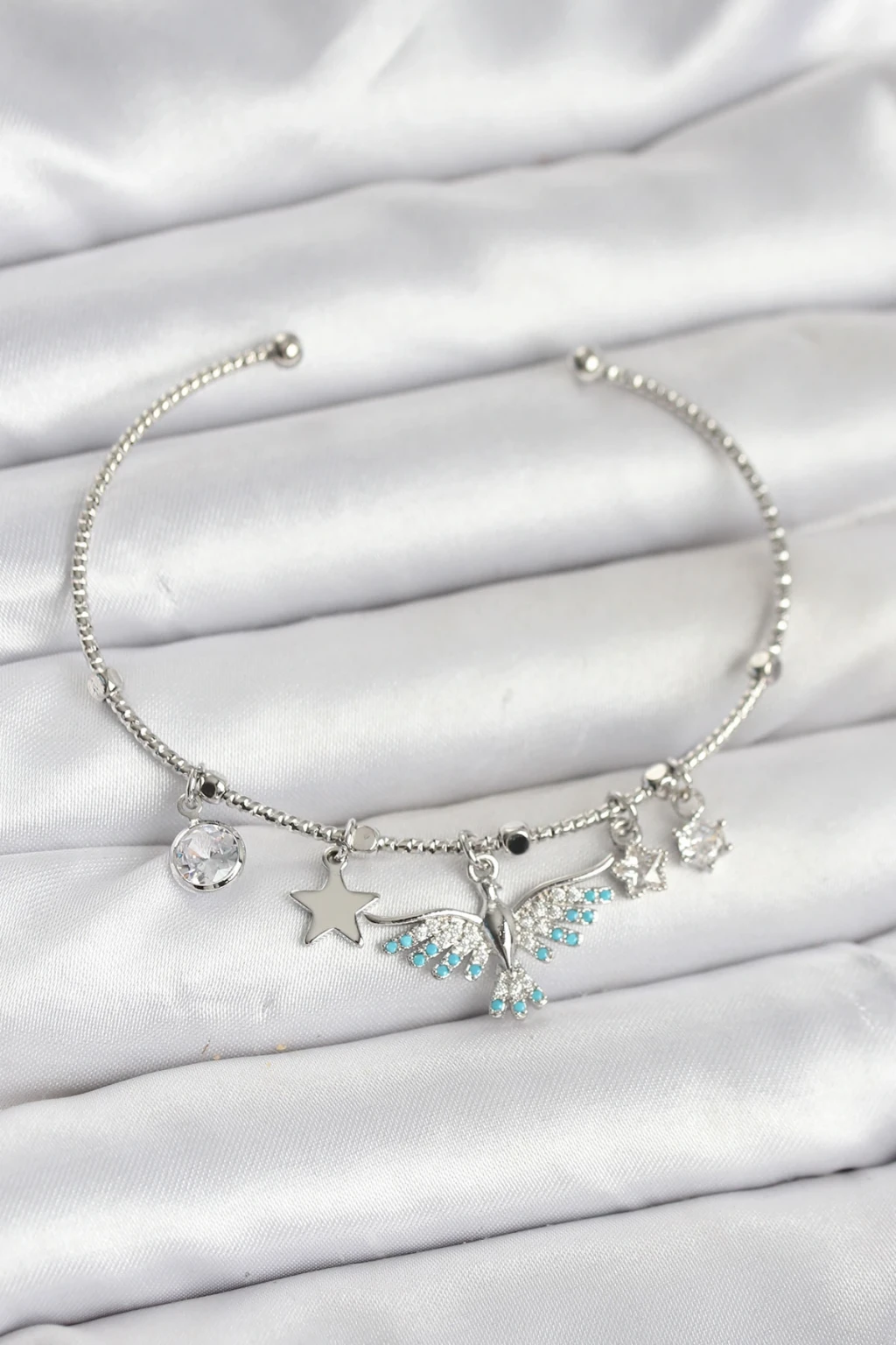 Anka Kuşu Charmlı Gümüş Renk Pirinç Kadın Bileklik - TJ-BB8040