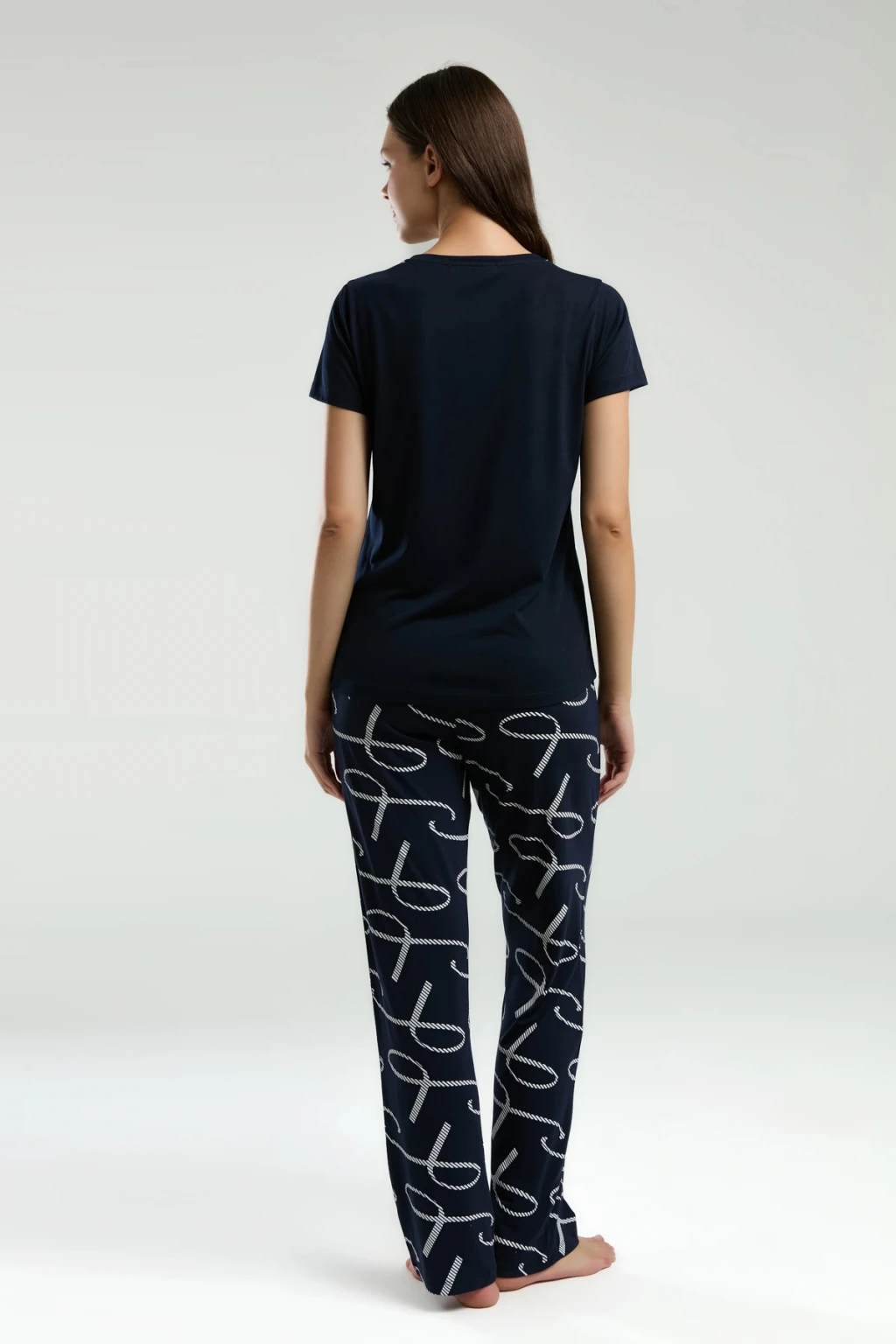 Kadın Lacivert Dantel Detaylı Beyaz Noktalı Şortlu Gecelik Pijama Takımı 5049