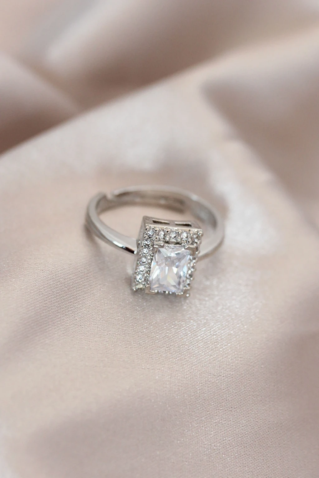 Ayarlamalı Silver Renk Metal Zirkon ve Kristal Taşlı Dikdörtgen Model Yüzük - TJ-BYK2067