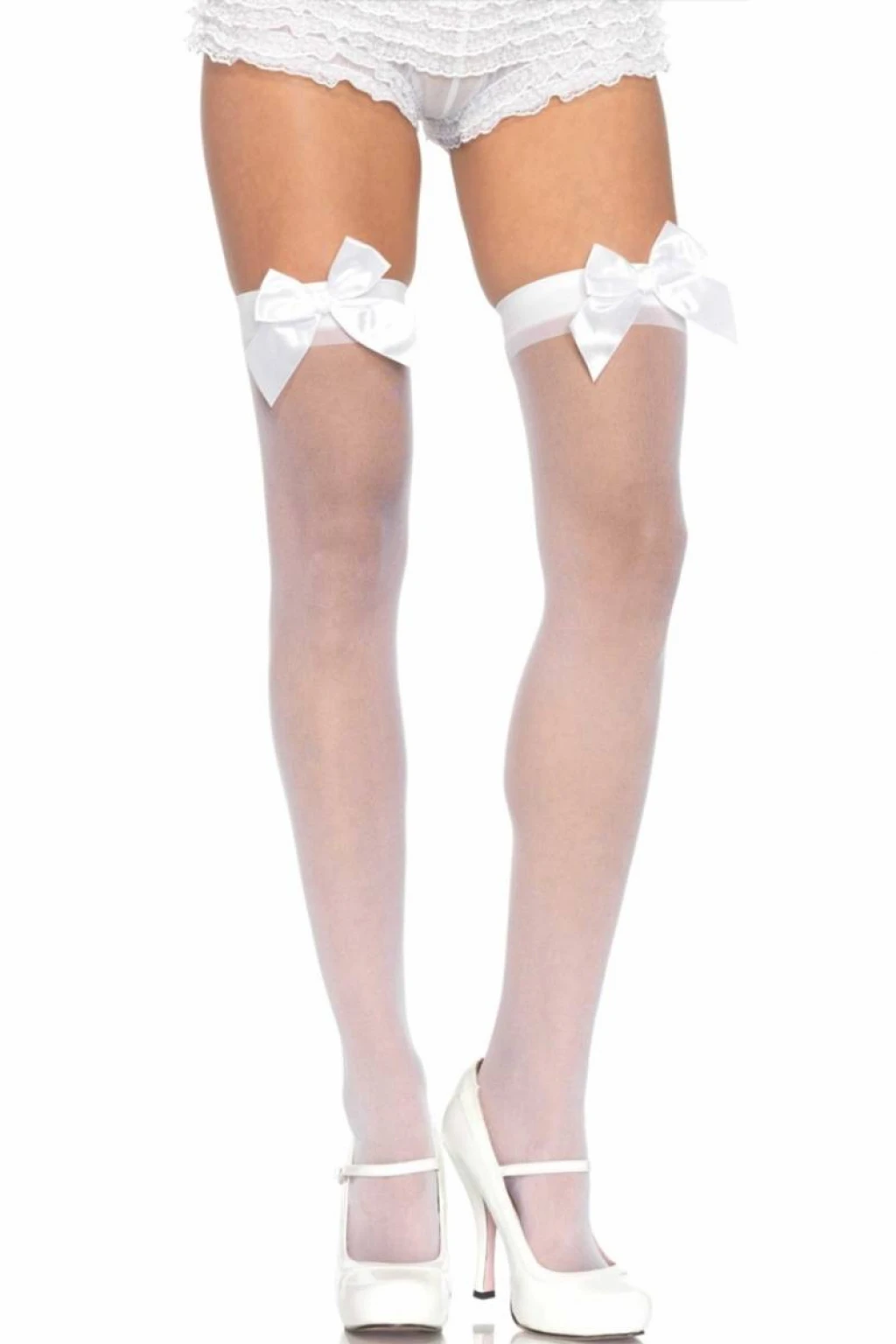 Beyaz Fiyonklu Beyaz Jartiyer Çorabı Brf1212