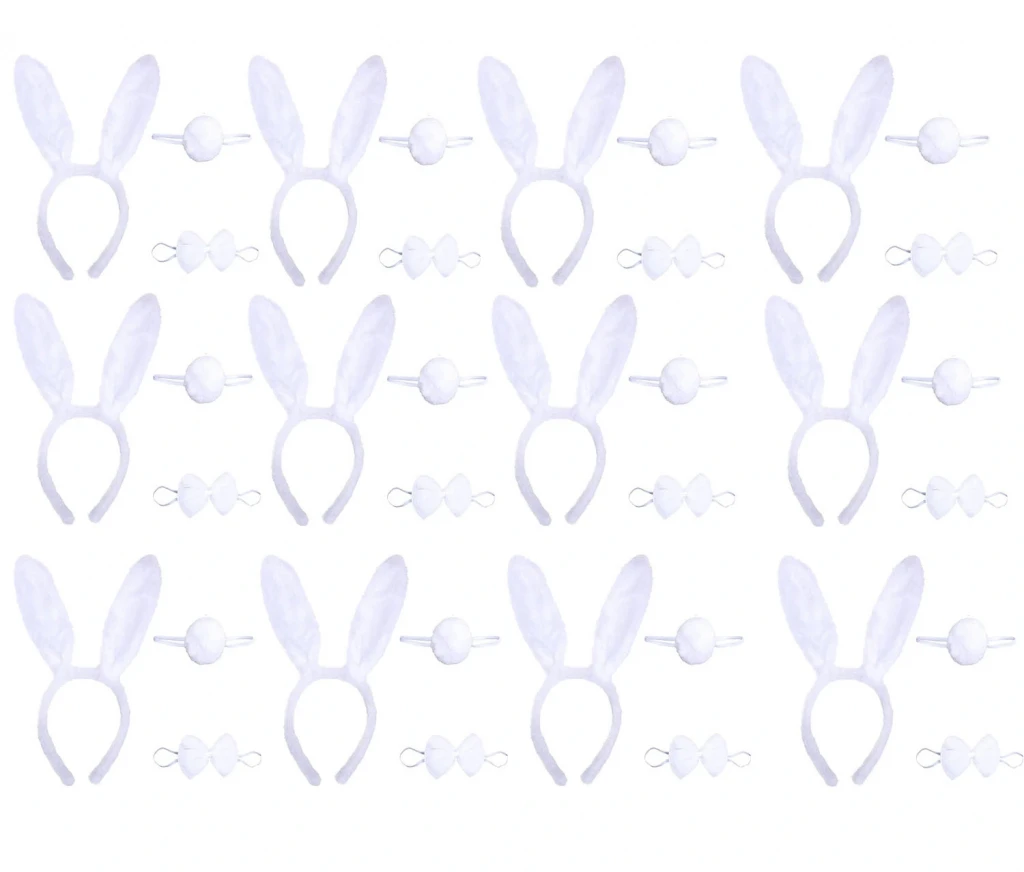 Beyaz Tavşan Kostüm Seti – Taç Papyon Kuyruk 12 li Paket