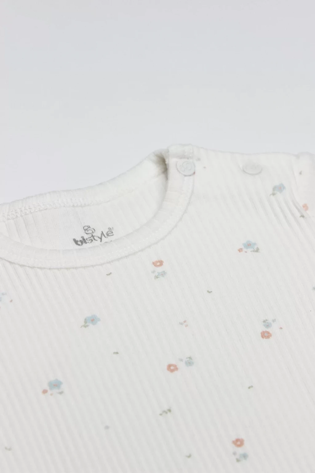 Bistyle Flying Bloom White Yarım Kol 2'li Body 17118 Ekru Gül Kurusu