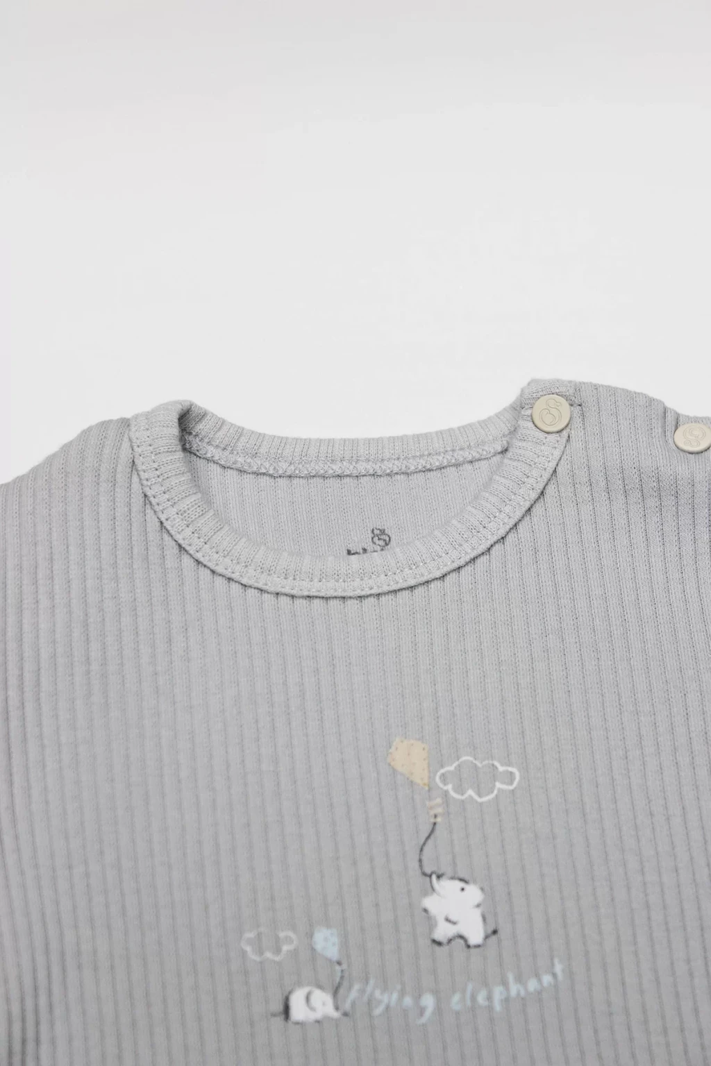 Bistyle Flying Elephant Yarım Kol 2'li Body 17116 Ekru Gri
