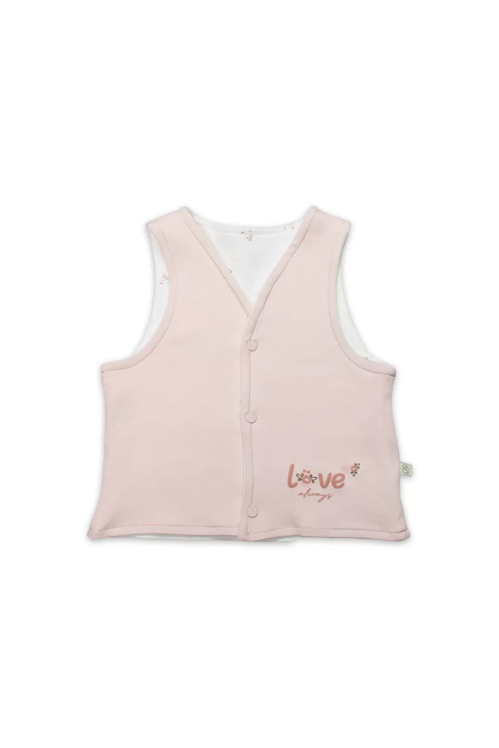 Bistyle Grow İn Love Çift Taraflı Bebe Yelek 18102 Pembe Ekru