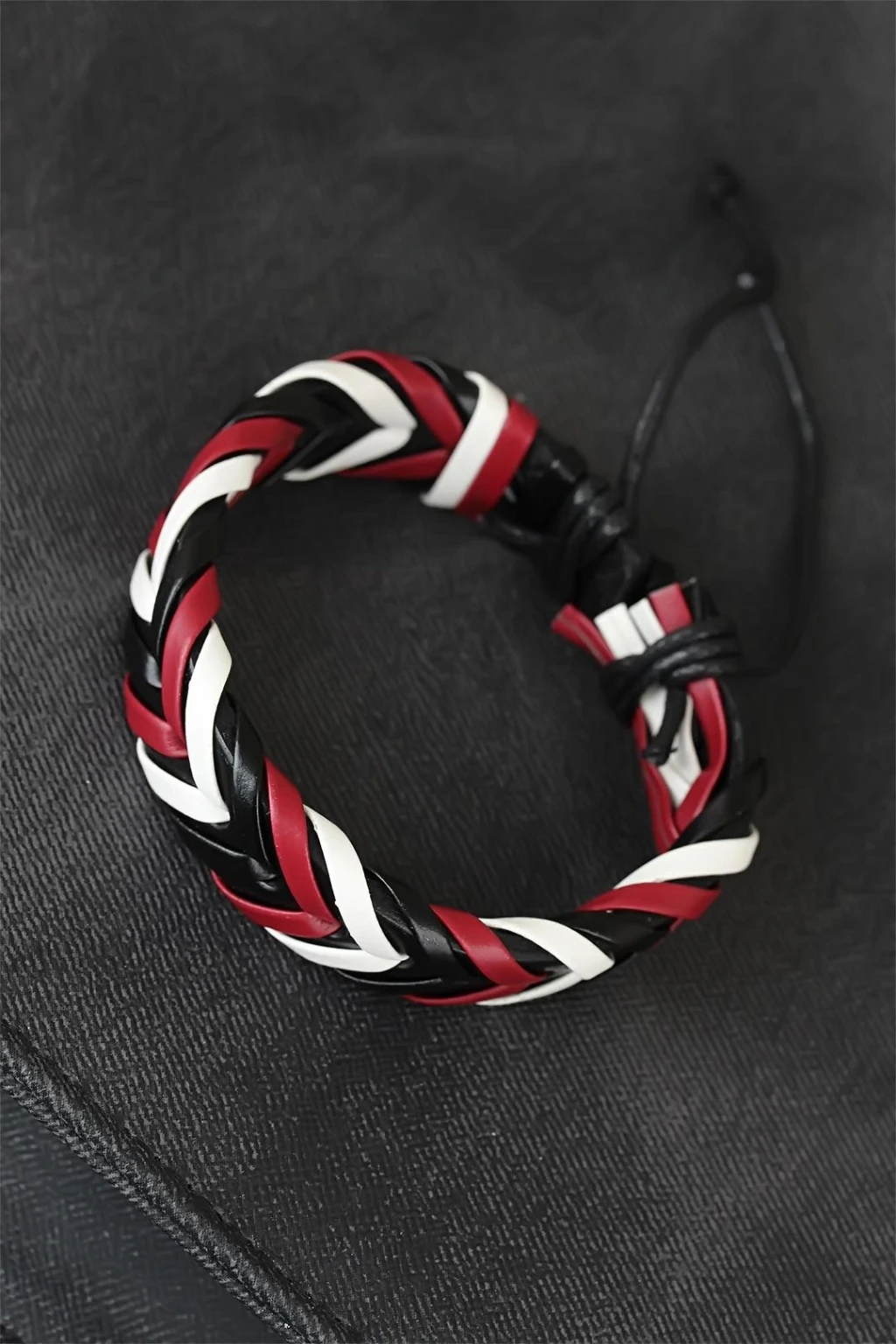 Şıklık sizin için Bordo Beyaz Siyah Örgü Deri Erkek Bileklik modeli ile çok kolay olacak.