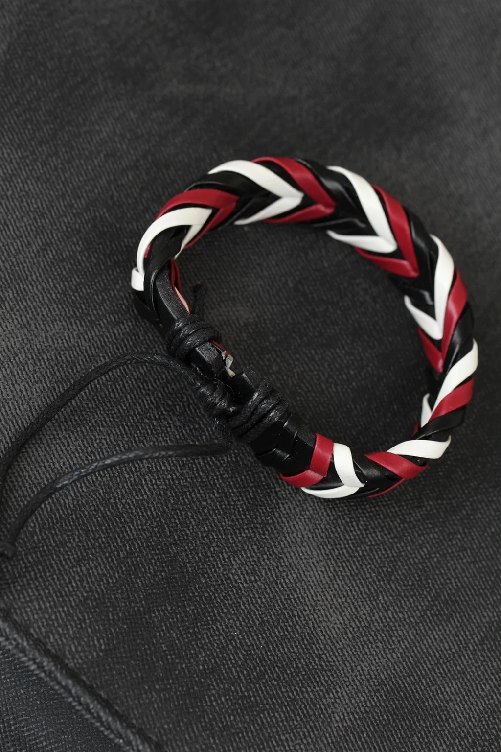 Bordo Beyaz Siyah Örgü Deri Erkek Bileklik - TJ-EB1846