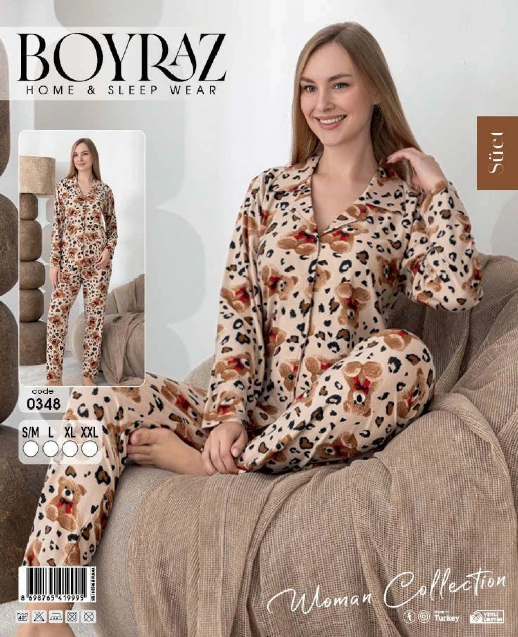 Boyraz 0350 Kadın Süet Patlı Uzun Kol Pijama Takımı