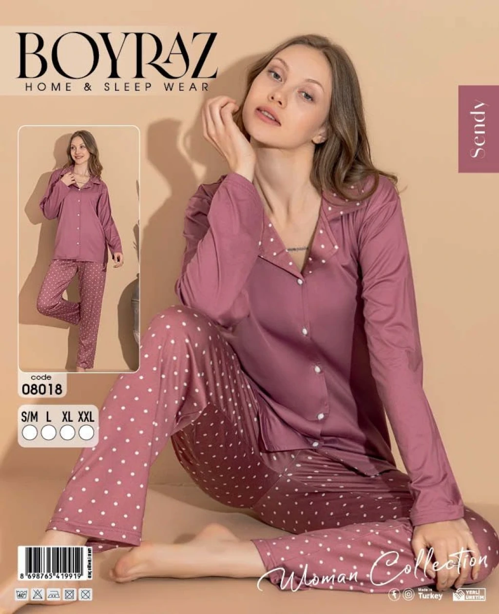 Boyraz 0153 Kadın Sandy Soft Uzun Kol Pijama Takımı