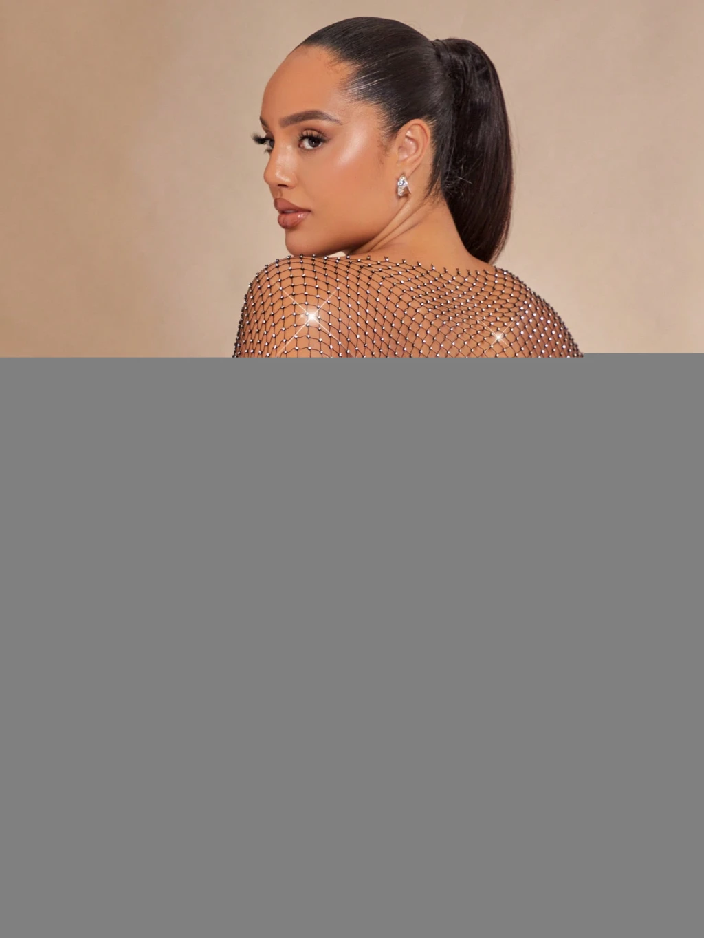 Işıltılı Pullu , Taşlı File Elbise– Kolsuz, Transparan, Parlak Gece Elbisesi
