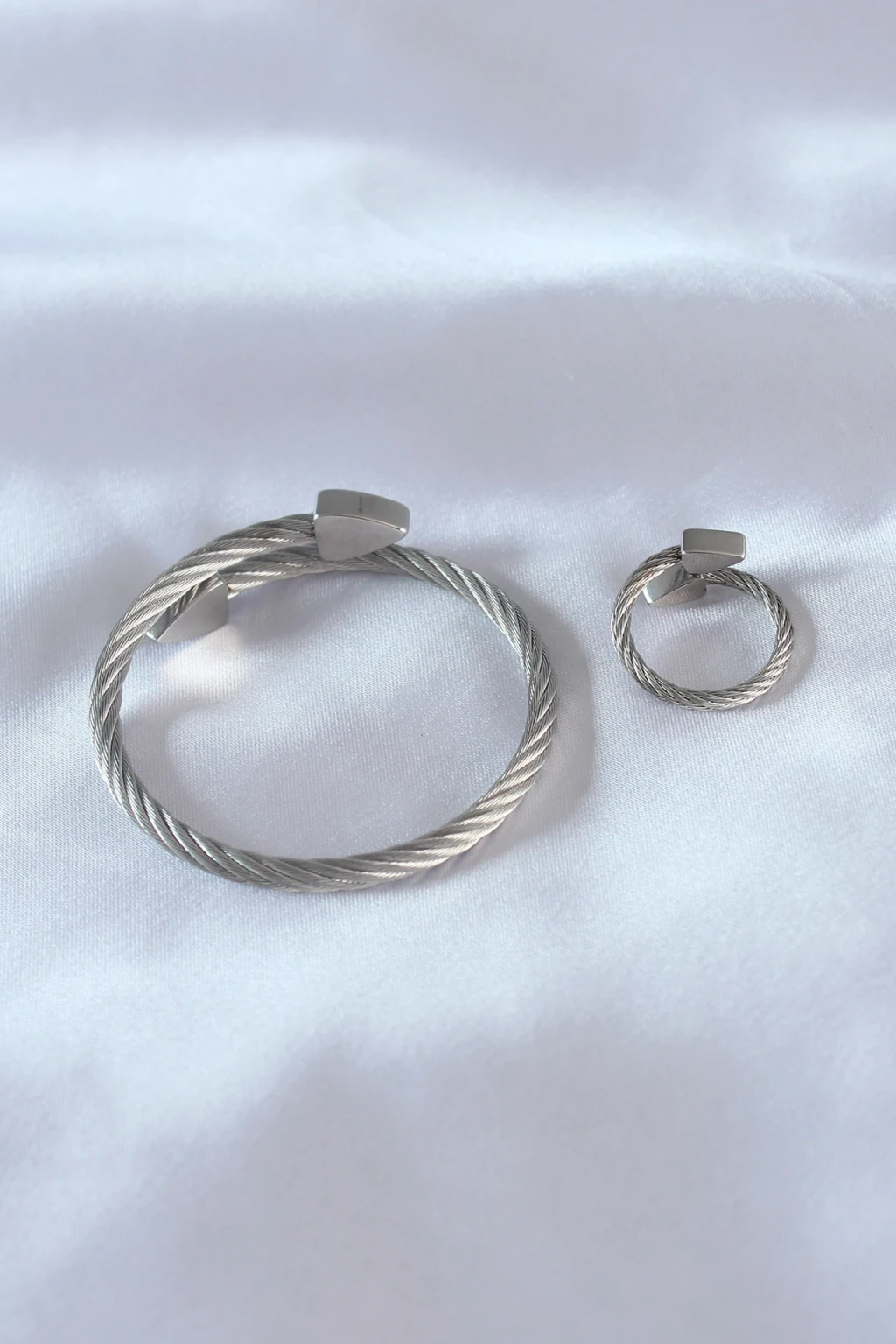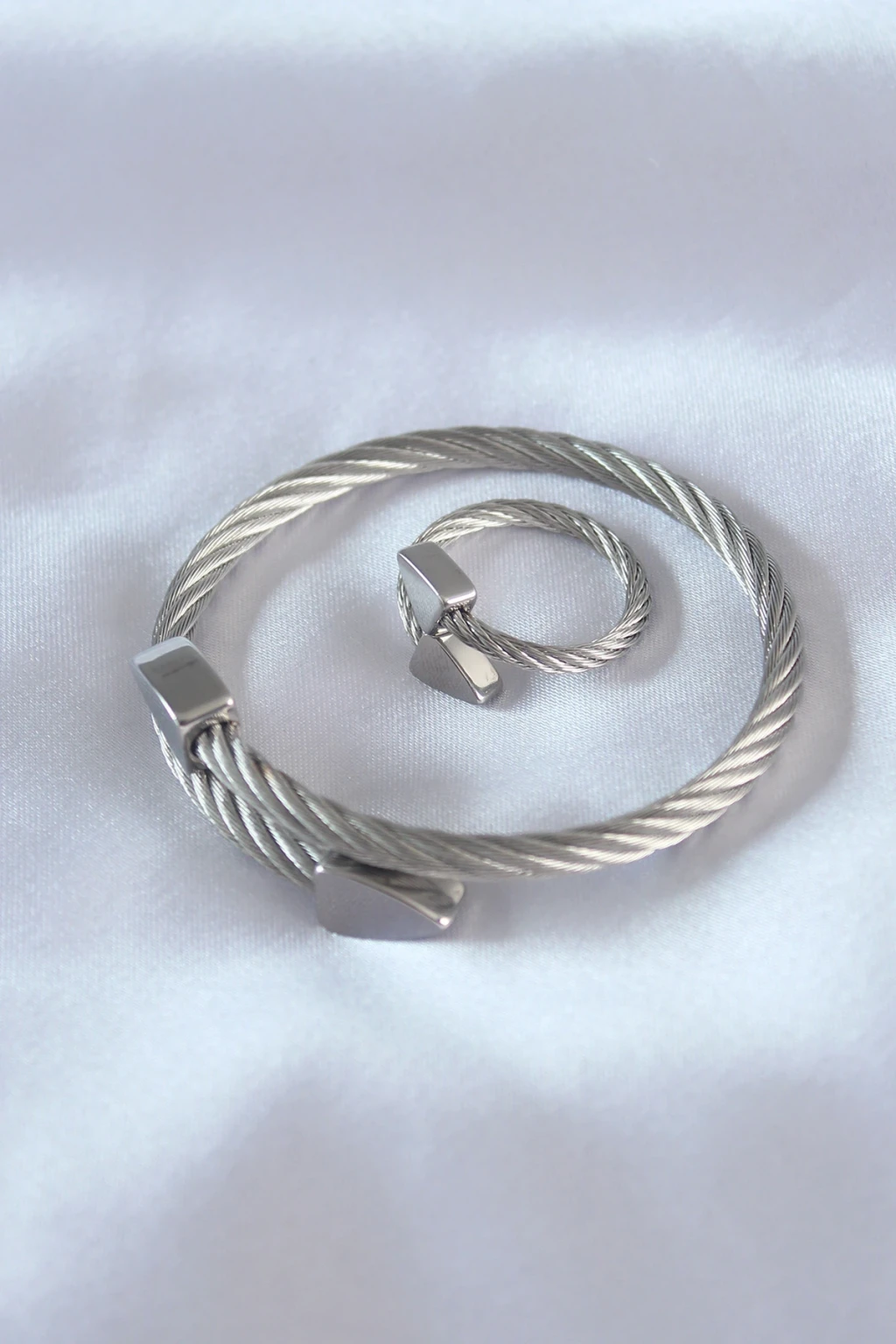 316L Çelik Gümüş Renk Sarmal Model Erkek Bileklik Yüzük Kombini - TJ-EB3602