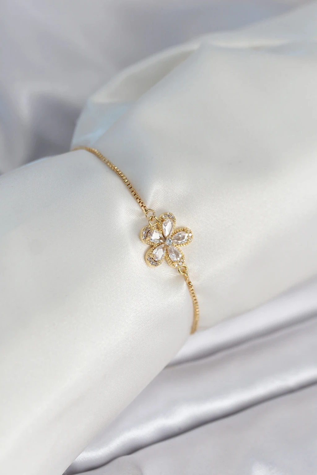 Kelebek Figürlü Zirkon Taşlı Gold Renk Pirinç Kadın Bileklik - TJ-BB8002