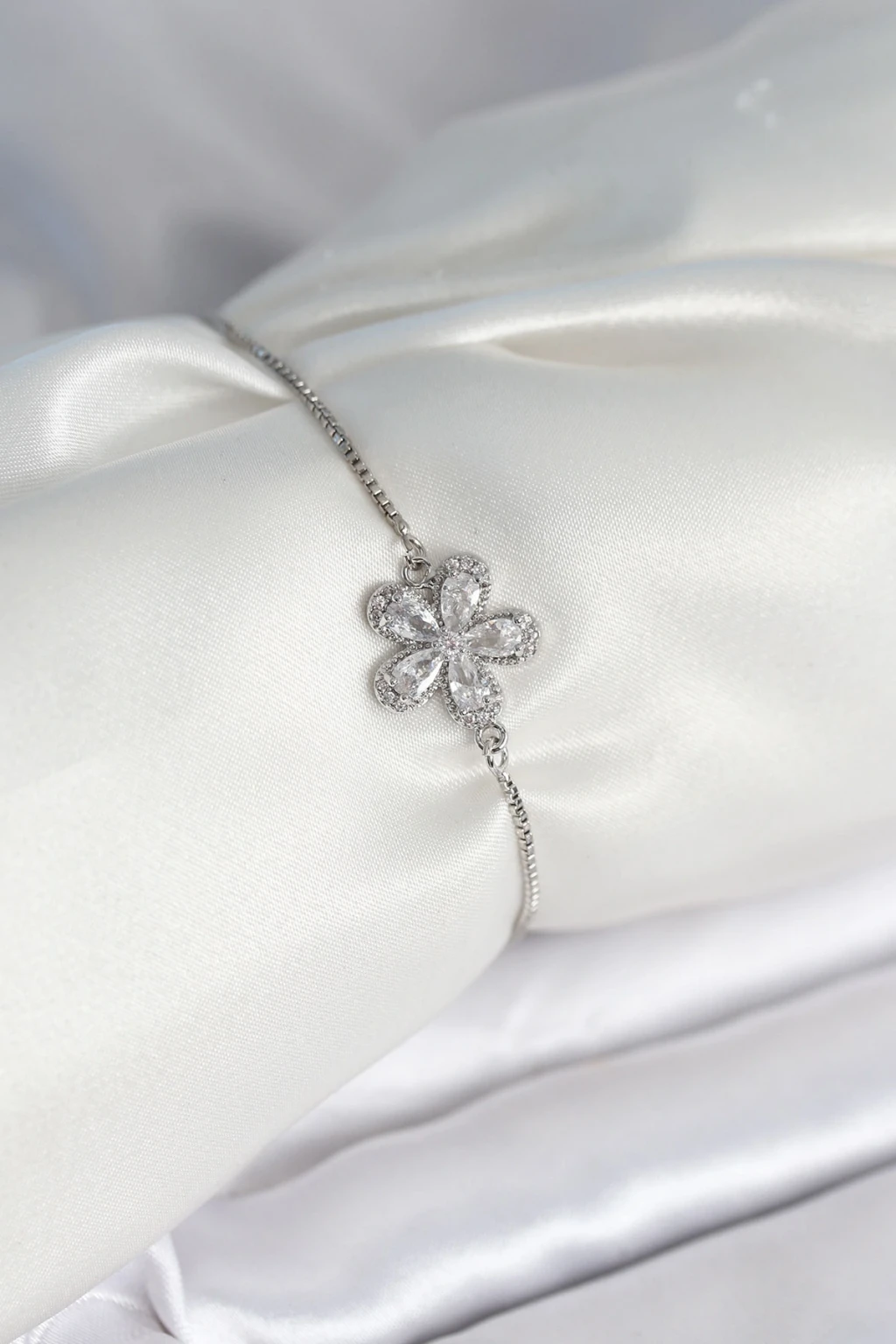Çiçek Model Asansörlü Gümüş Renk Kadın Bileklik - TJ-BB8012