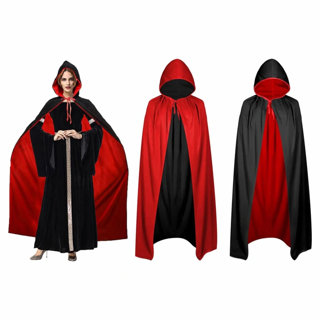 Çift Taraflı Kullanılabilir Siyah Kırmızı Kapişonlu Pelerin 140 cm Yetişkin, kostüm partileri, cosplay veya diğer özel günlerde eğlenceli ve gizemli bir görünüm elde etmek isteyenler için mükemmel bir seçimdir. Siyah ve kırmızı olmak üzere iki farklı rengi ile kullanılabilen bu pelerin, size birçok farklı kostüm seçeneği sunar. Kapüşonu ve uzun boyu ile de gizemli bir hava katacaktır.