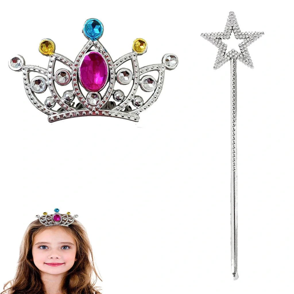 Çocuklar İçin Taraklı Prenses Tacı ve Prenses Yıldız Asa Seti Gümüş