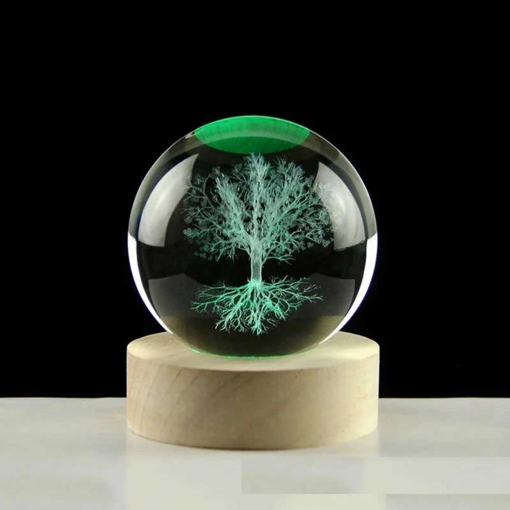 Dekoratif Ağaç Tasarımlı Ahşap Altlıklı Işıklı Cam Küre Büyük Boy 8 Cm MZ4-2311
