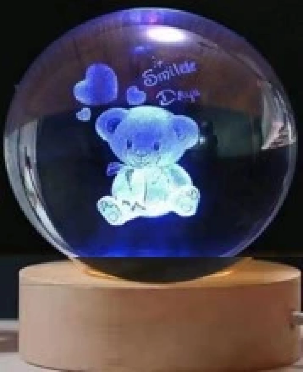 Dekoratif Ayıcık Tasarımlı Ahşap altlıklı Işıklı Cam Küre Büyük Boy Cam:8cm Ahşap:2cm