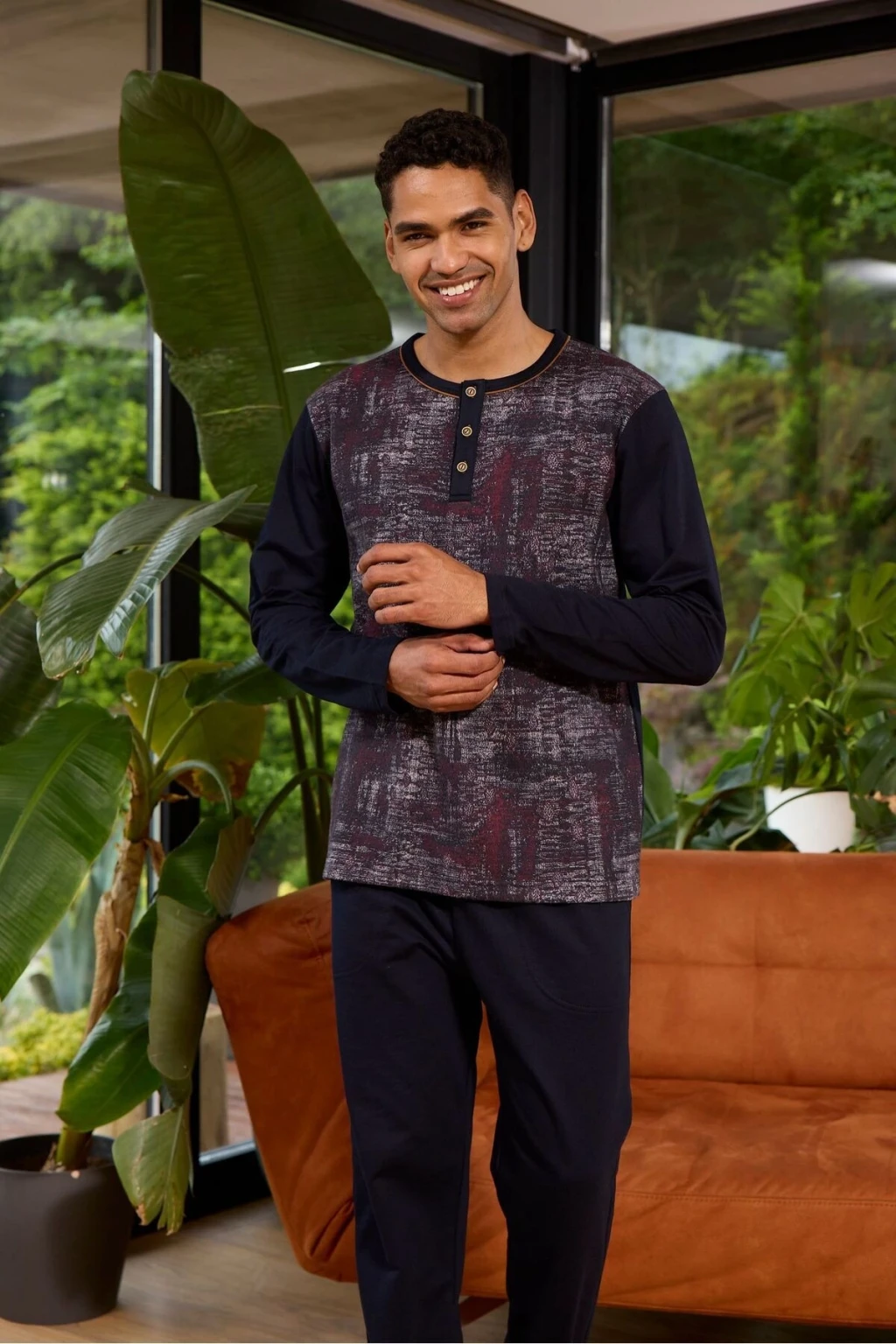 Erkek 8053 Erkek Midi Yaka Uzun Kollu Pijama Takımı