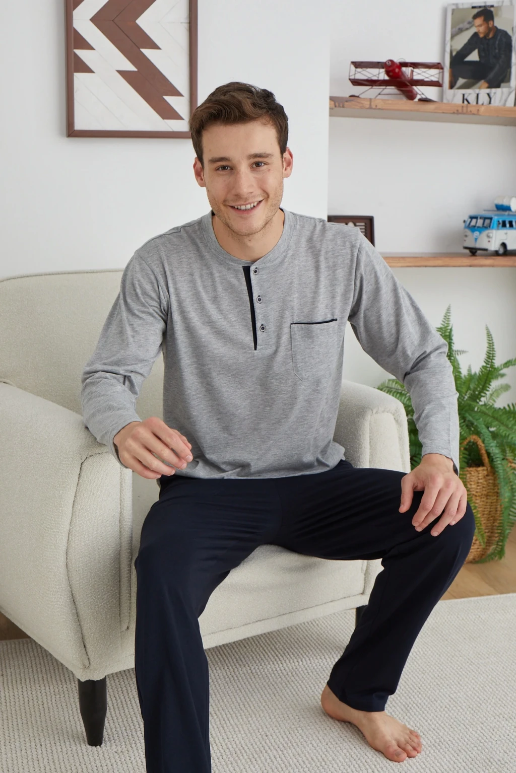 Erkek 9111 Battal Erkek Midi Yaka Pijama Takımı