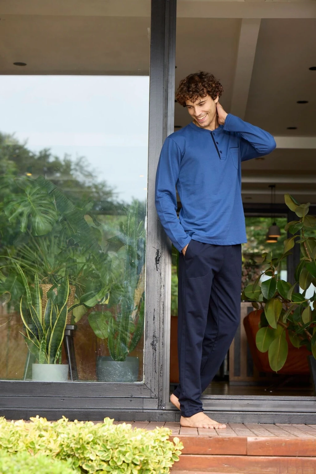 Erkek 9133 Erkek Midi Yaka Uzun Kollu Pijama Takımı