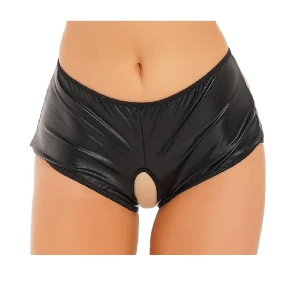 Fantezi Siyah Özel Bölgeleri Açık Parlak Külot