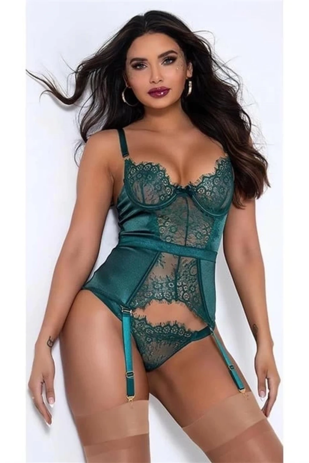 For Dreams 8609 Tül Dantel Fantezi Kadın Body Jartiyer Takım