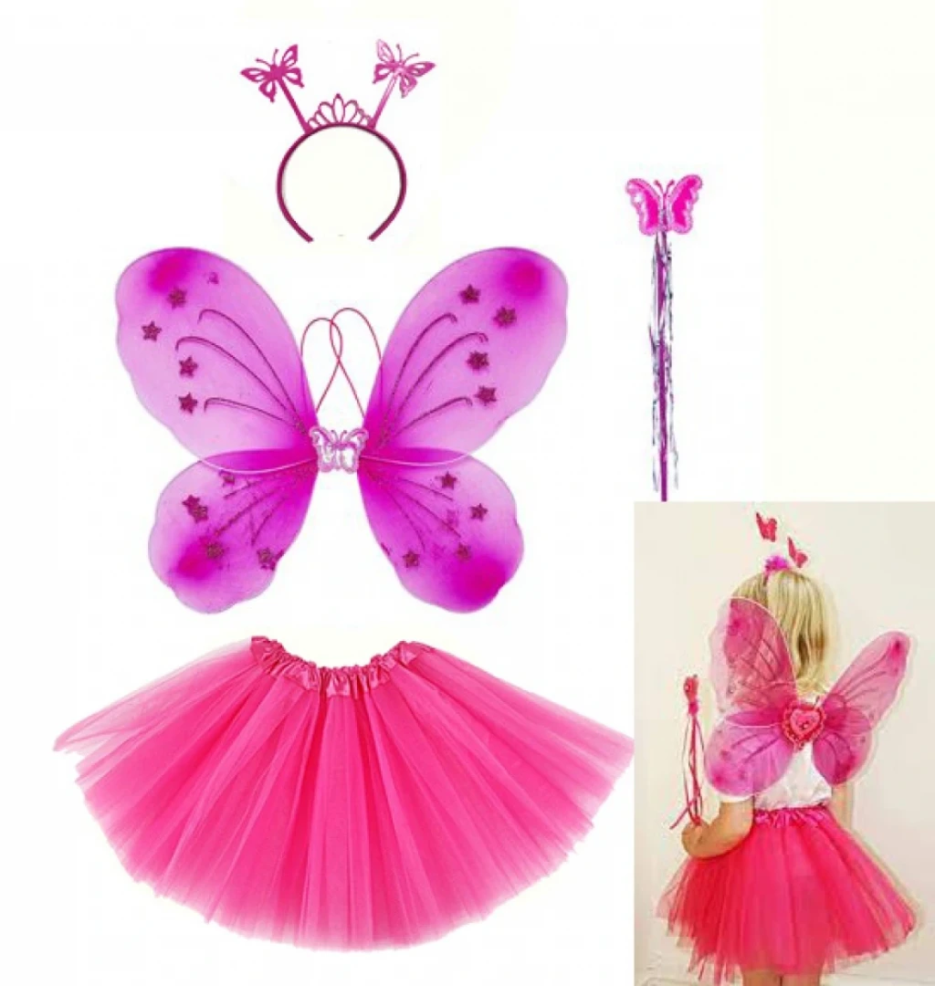 Fuşya Kelebek Kostümü - Fuşya Kelebek Kostüm Aksesuar Seti 4 Parça
