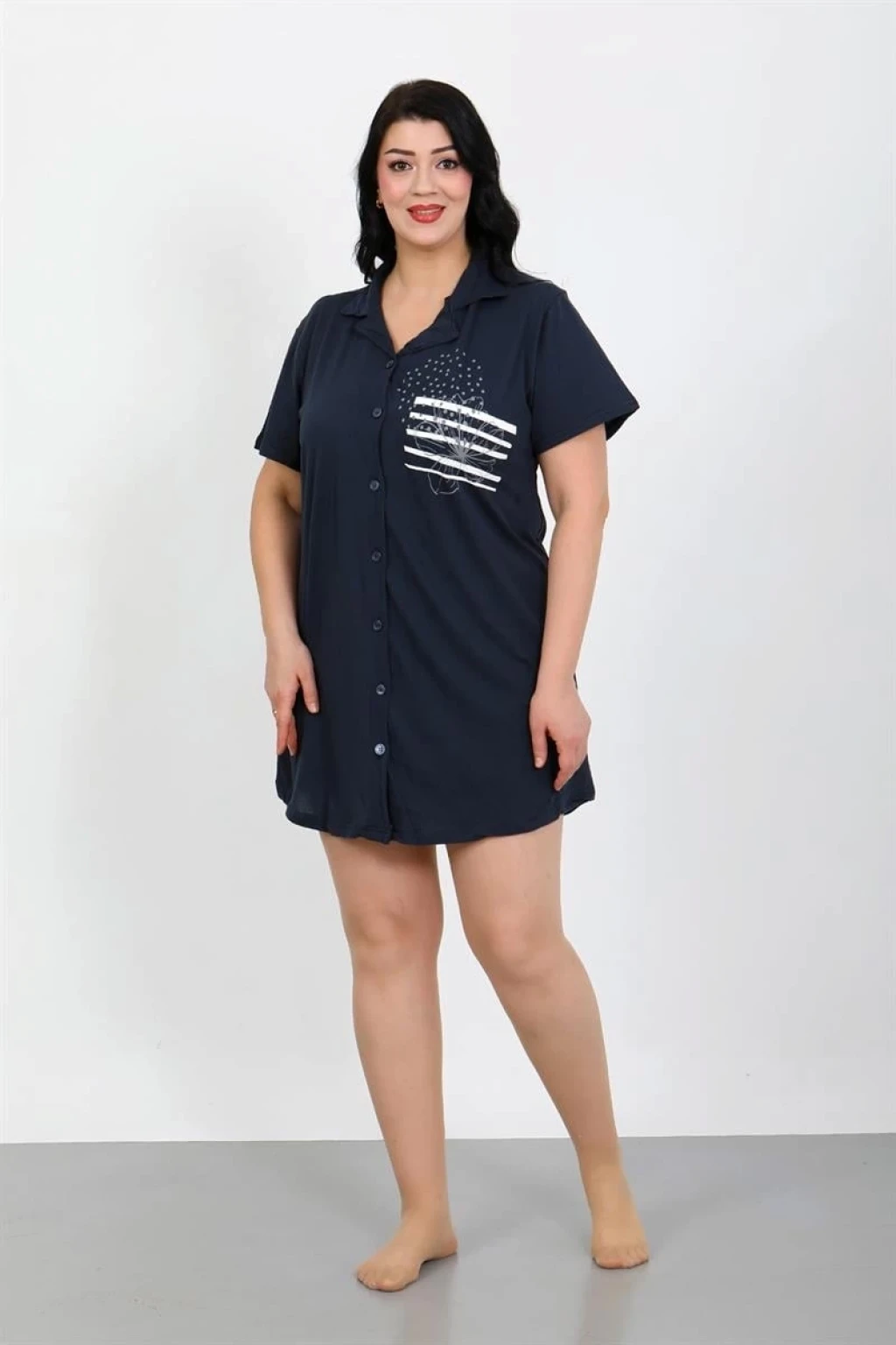 Çamaşır Kenti'nin Büyük Beden Penye Düğmeli Lacivert Tunik Geceliği ile her gece kendinizi özel hissedin!