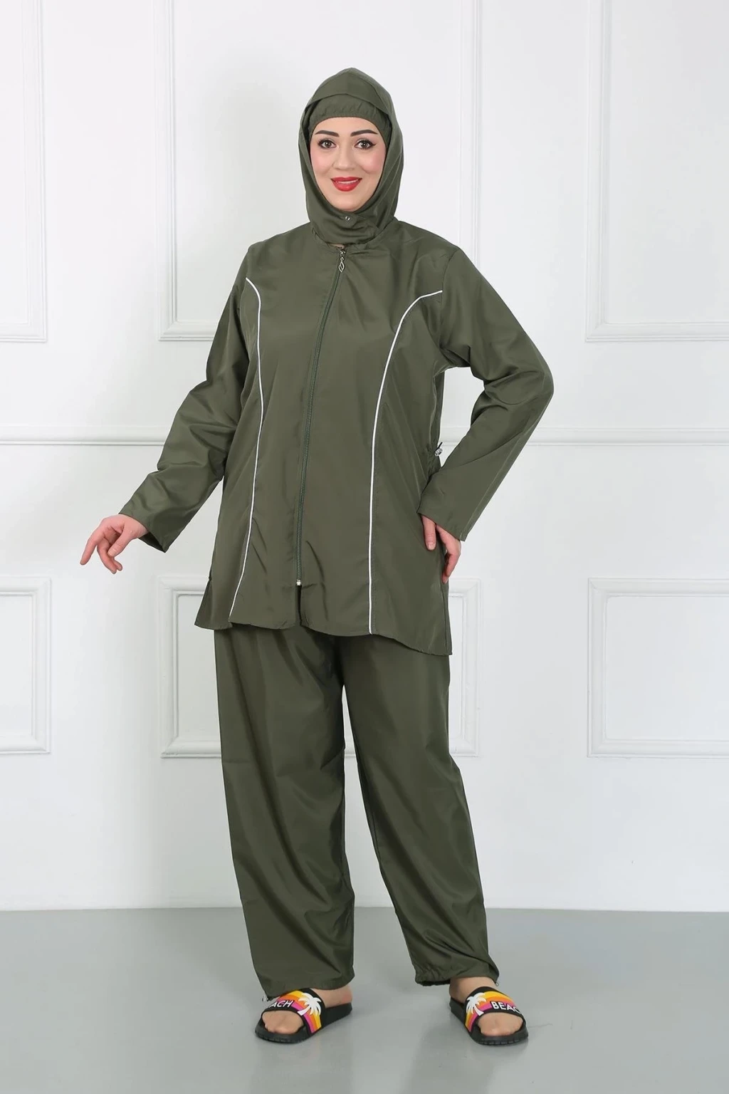 Büyük Beden Tesettür Büyük Mayo Haki, şıklık ve rahatlığı bir arada sunar. Çamaşır Kenti'nin özel tasarımı olan bu mayo, plajda tarzını konuşturmak isteyenler için ideal bir seçenektir.