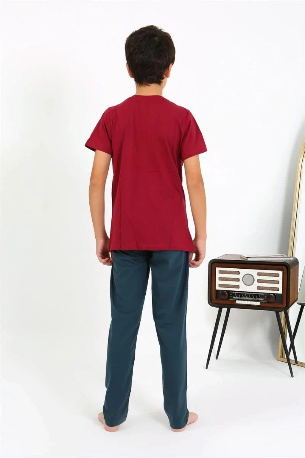 Çamaşır Kenti Erkek Çocuk Kısa Kol Penye Pijama Takımı Bordo, hem şık hem de rahat bir uyku deneyimi sunar.