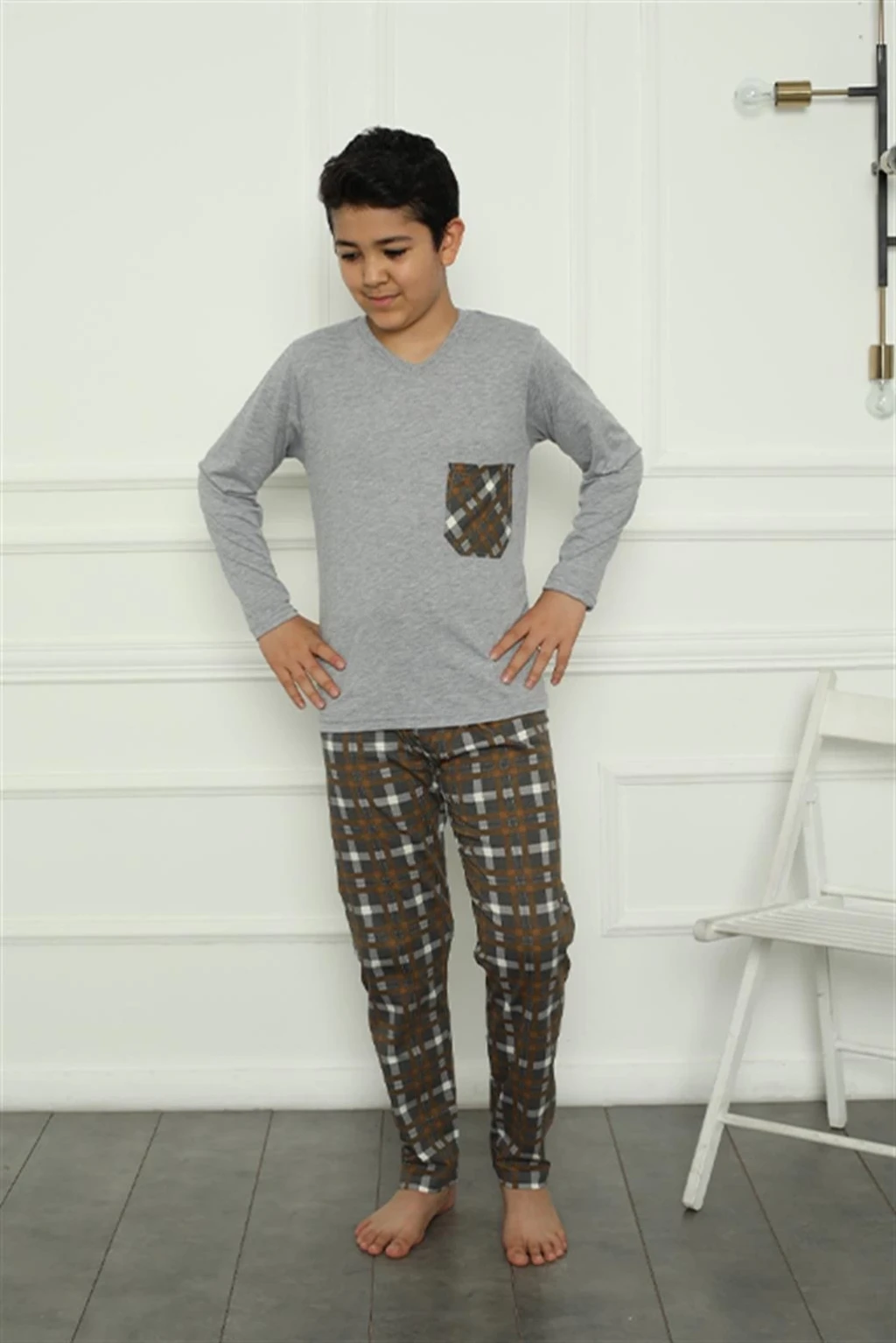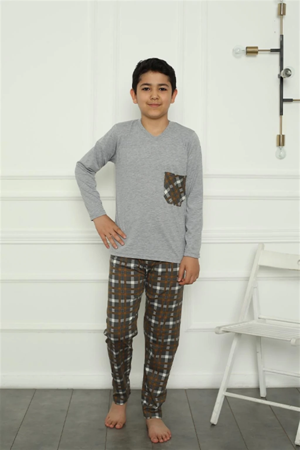 Çamaşır Kenti Erkek Çocuk Penye Pijama Takımı, küçük erkeklerin rahat ve şık bir görünüme sahip olmalarını sağlar.