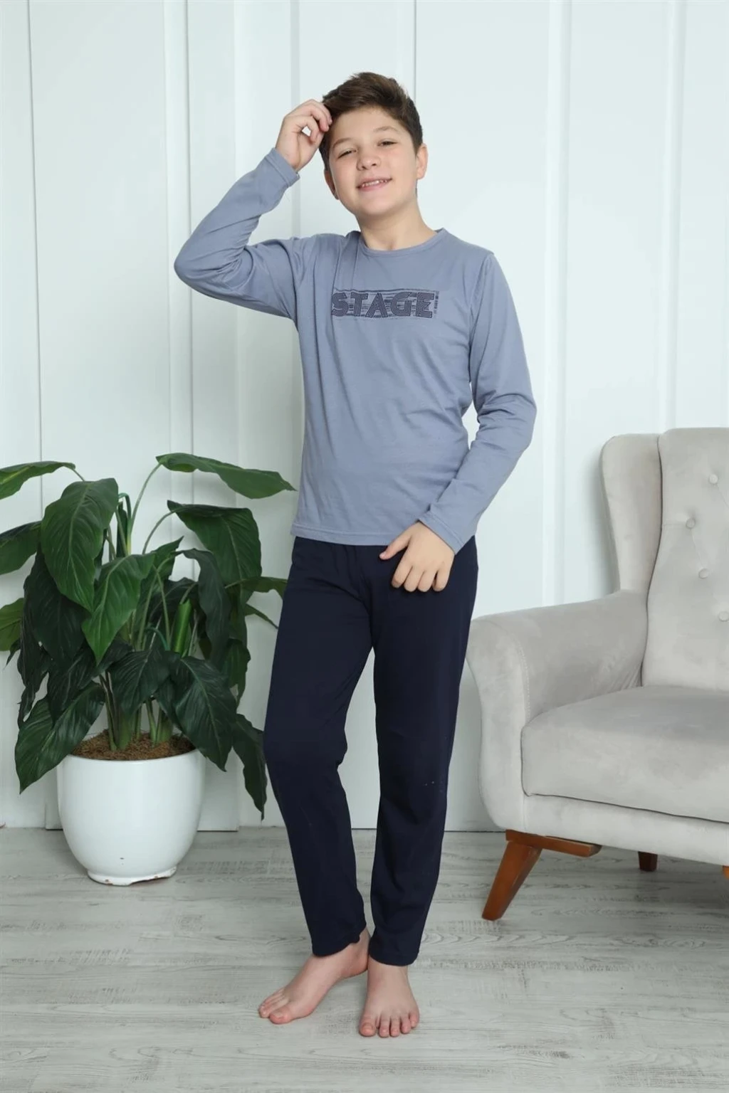 Giyim Erkek Çocuk Uzun Kol Penye Pijama Takım Gri