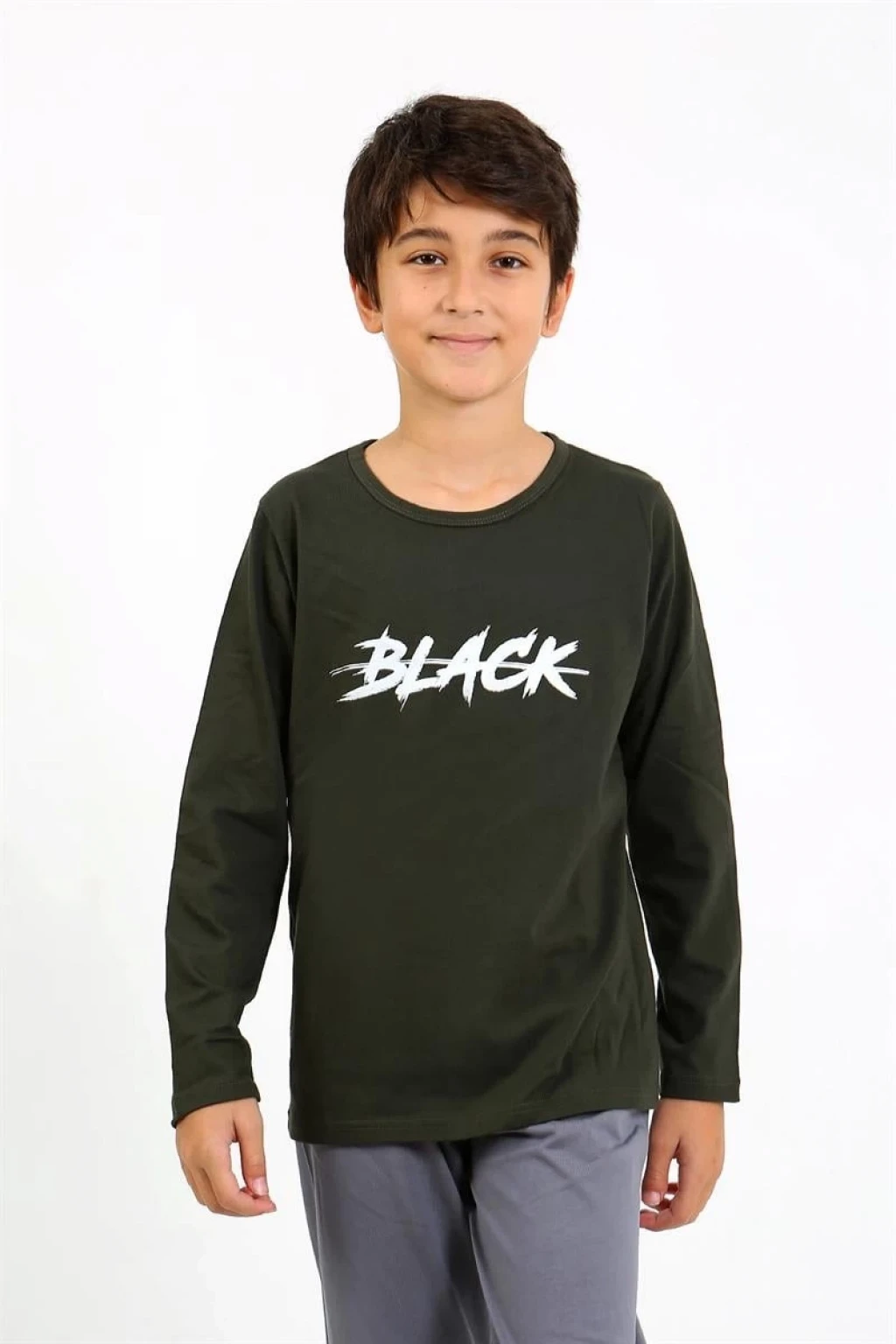 Erkek Çocuk Uzun Kol Penye Pijama Takımı Haki, kaliteli malzemesi ve şık tasarımıyla çocukları hem sıcacık tutar hem de rahat bir uyku deneyimi sunar.