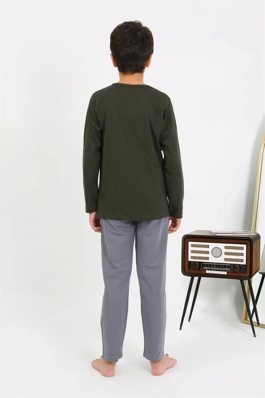 Çamaşır Kenti markası tarafından üretilen Erkek Çocuk Uzun Kol Penye Pijama Takımı Haki, küçük beyefendilerin rahat ve şık bir görünüme sahip olmalarını sağlar.
