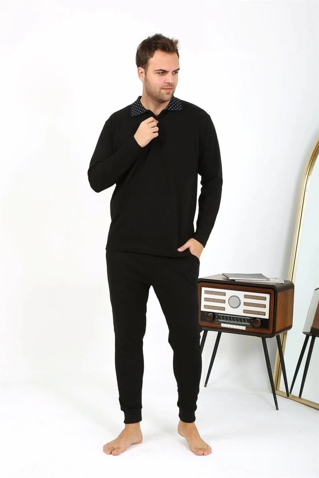 Çamaşır Kenti'nin şıklığı ve rahatlığı bir araya getirdiği Erkek Polo Yaka Uzun Kol Penye Pijama Takımı Siyah, konfor arayan erkeklerin vazgeçilmezi olmaya aday! İşte bu şık pijama takımının özellikleri: