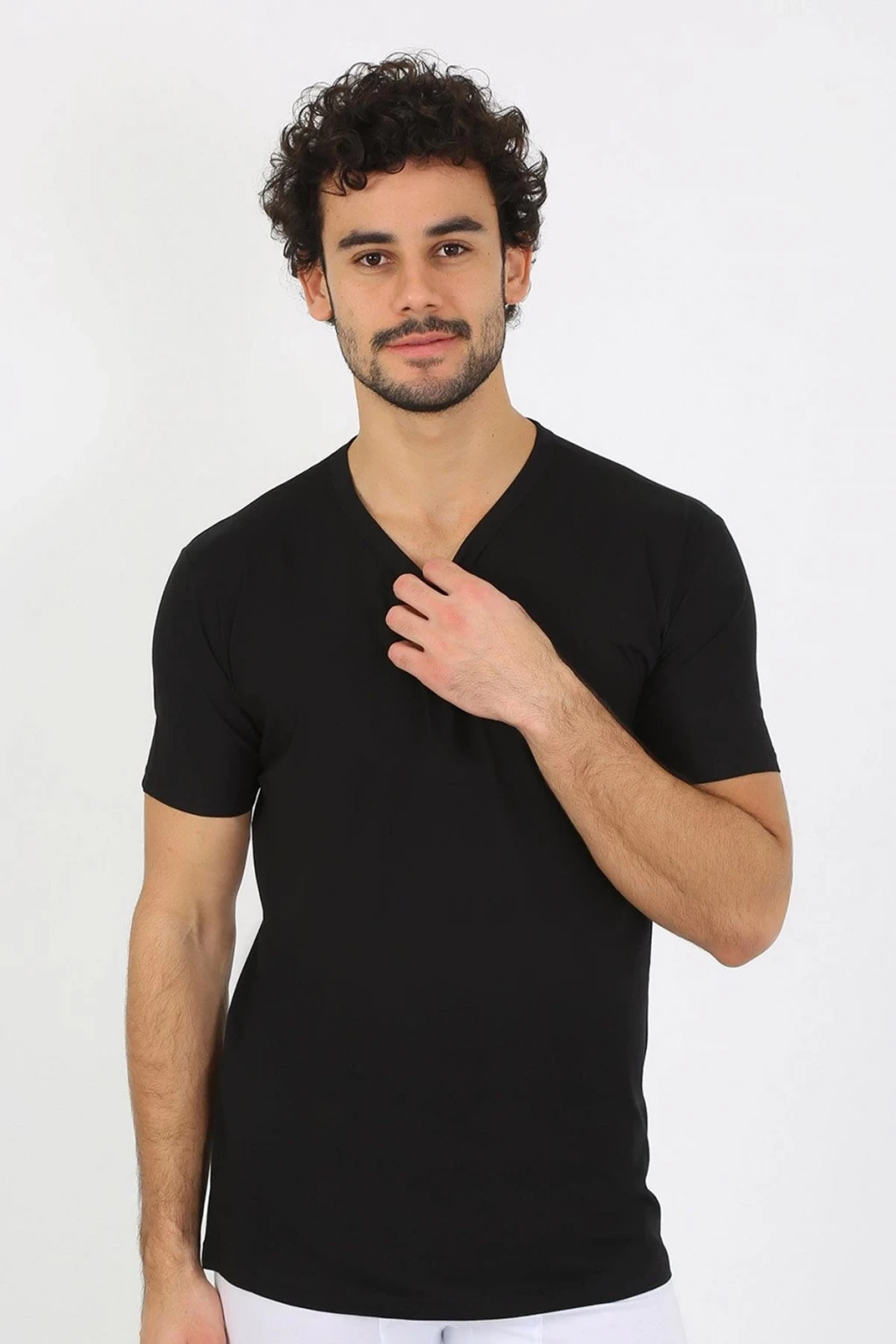 Giyim Erkek V Yaka Siyah Penye Atlet