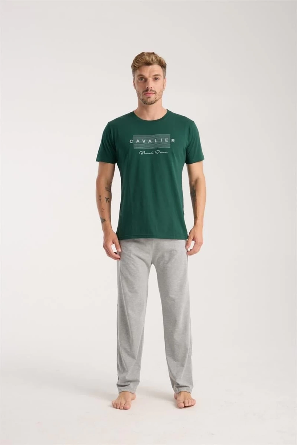 Çamaşır Kenti erkek yeşil kısa kol pijama takımıyla rahatlığın keyfini yaşayın.