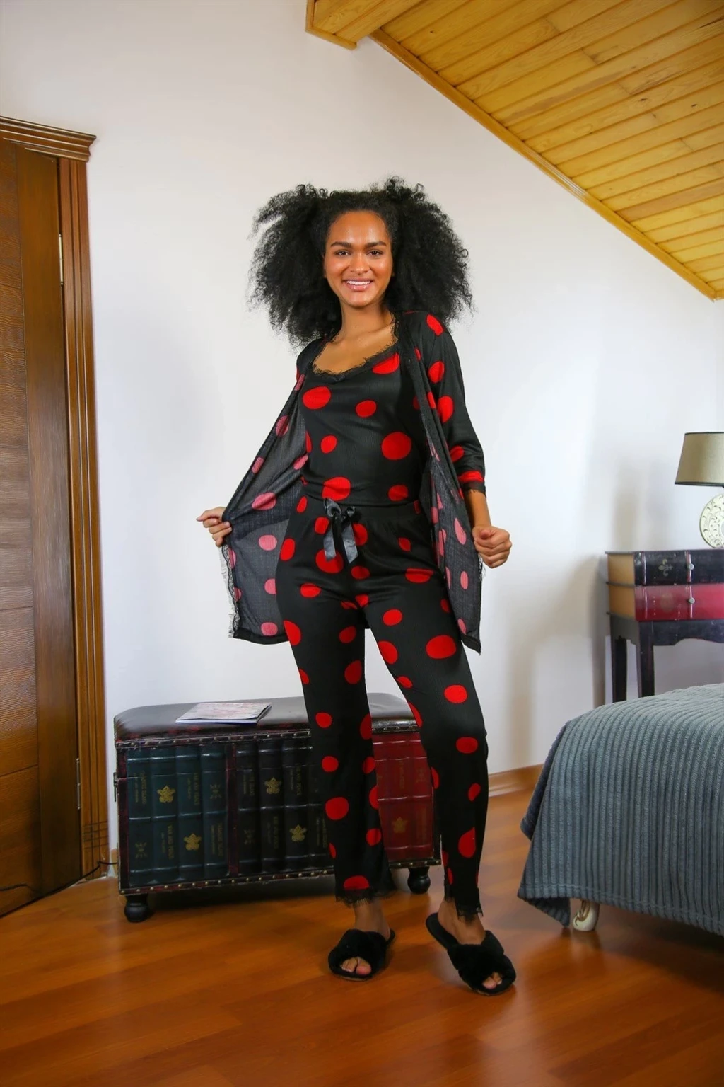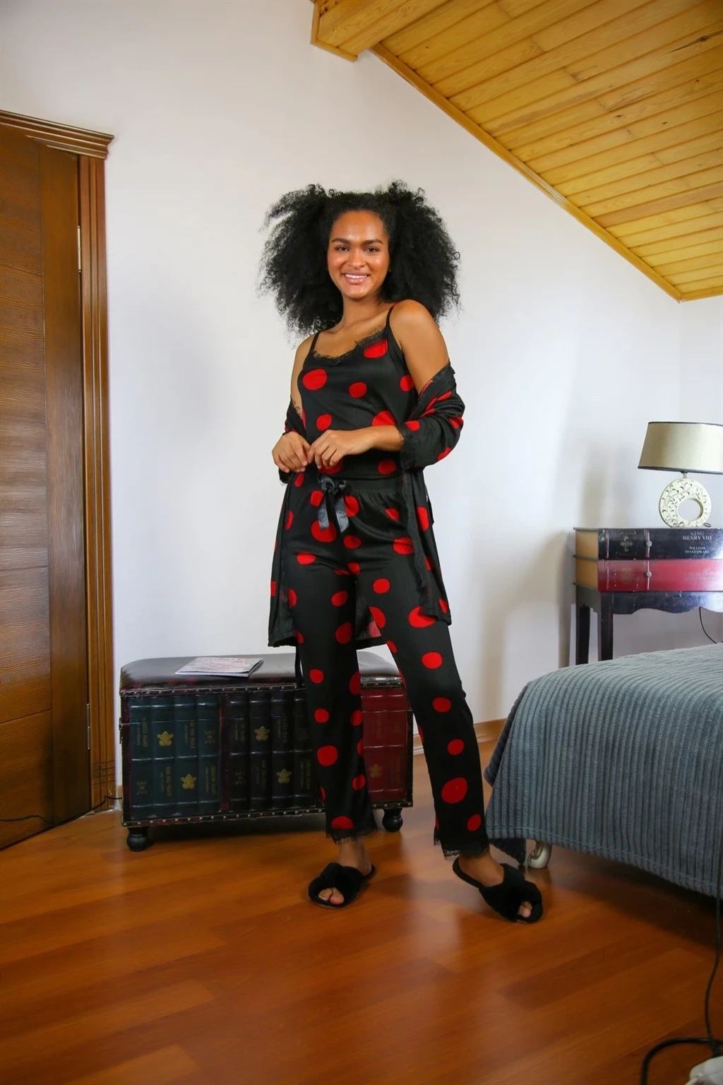 Çamaşır Kenti Kadın 3'lü Sabahlık Pijama Takımı Siyah ile geceyi şıklıkla karşılamaya hazır olun!