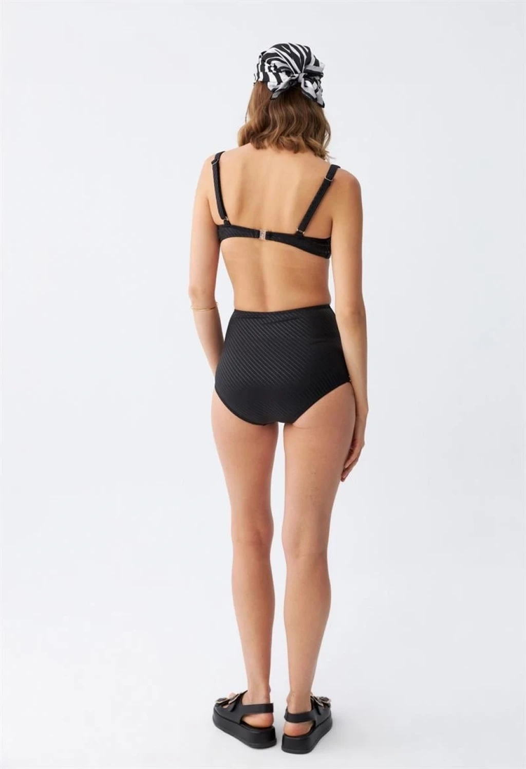 Kadın Siyah Pedli Kare Yaka Yüksek Bel Bikini Takımı