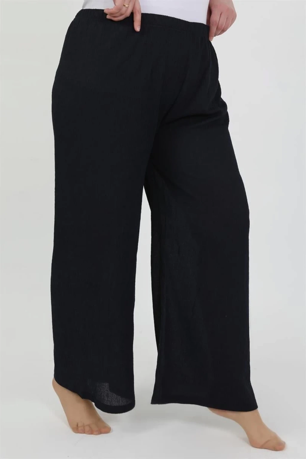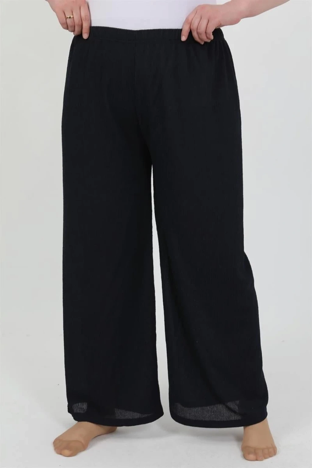 Kadın Büyük Beden Bürümcük Pantolon Lacivert, şıklığı ve rahatlığı bir arada sunuyor. Çamaşır Kenti markasının özenle tasarladığı bu pantolon, büyük beden bayanlar için mükemmel bir seçenektir.