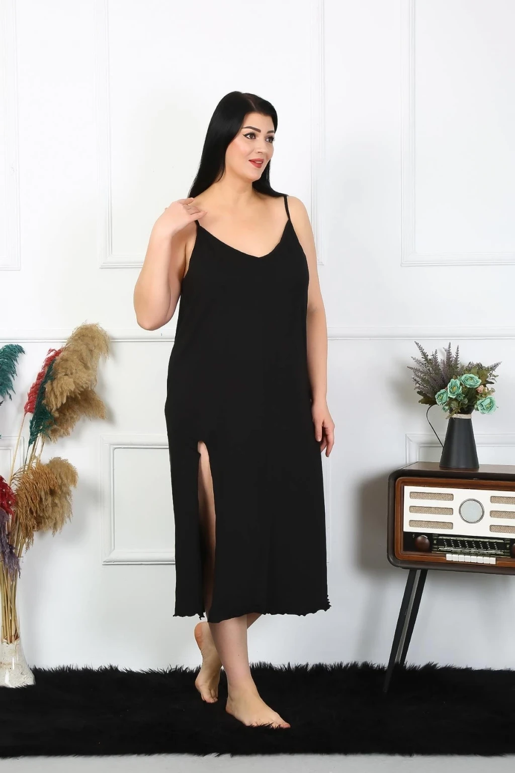 Çamaşır Kenti Kadın Büyük Beden İp Askılı Pamuklu Siyah Uzun Gecelik, rahatlığı ve şıklığı bir arada sunar.