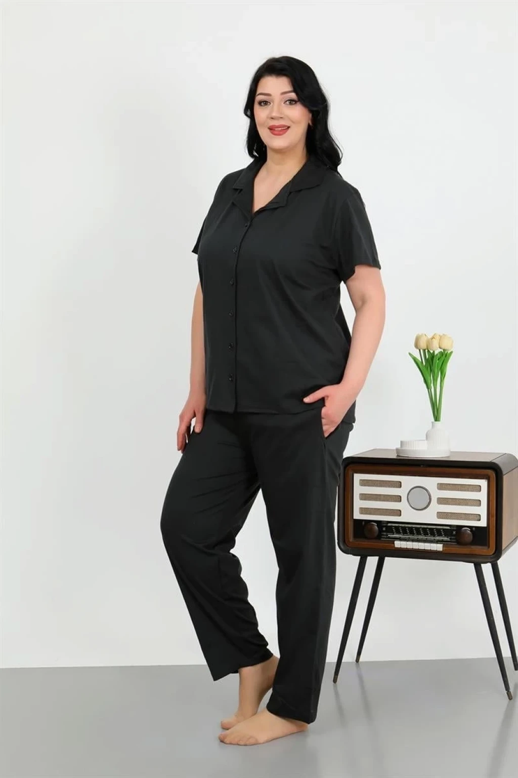 Çamaşır Kenti'nin zarif tasarımıyla öne çıkan Kadın Büyük Beden Pamuklu Cepli Düğmeli Siyah Pijama Takımı, konfor ve şıklığı bir arada sunar. Geniş beden seçenekleriyle rahat bir kullanım sağlarken, pamuklu kumaşıyla gün boyu nefes alabilirsiniz. Cepli detaylarıyla kullanışlılık vurgulayan bu pijama takımı, düğme detaylarıyla da şıklığı ön plana çıkarıyor. Evinizde veya konforlu bir gece için ideal bir seçim olan bu pijama takımı, günün yorgunluğunu üzerinizden atmanızı sağlar. Siyah rengi ile de göz alıcı bir görünüm sunar. Kadın Büyük Beden Pamuklu Cepli Düğmeli Siyah Pijama Takımı, tarzını ve konforunu bir arada arayan kadınların tercihi olacak.
