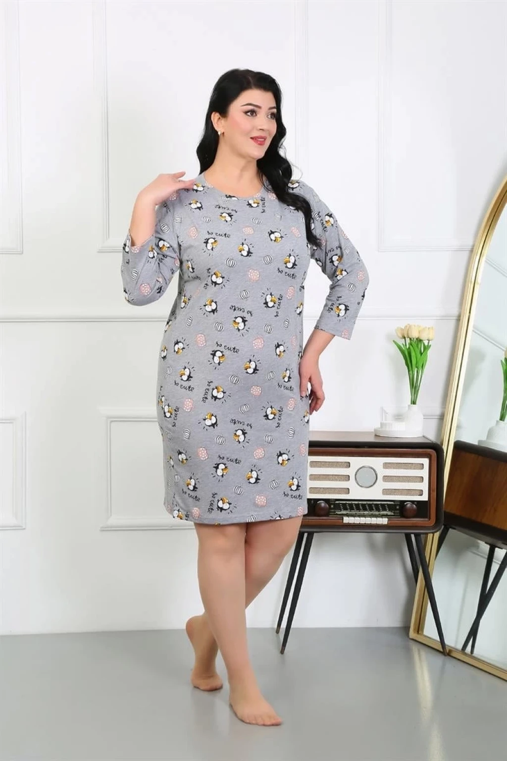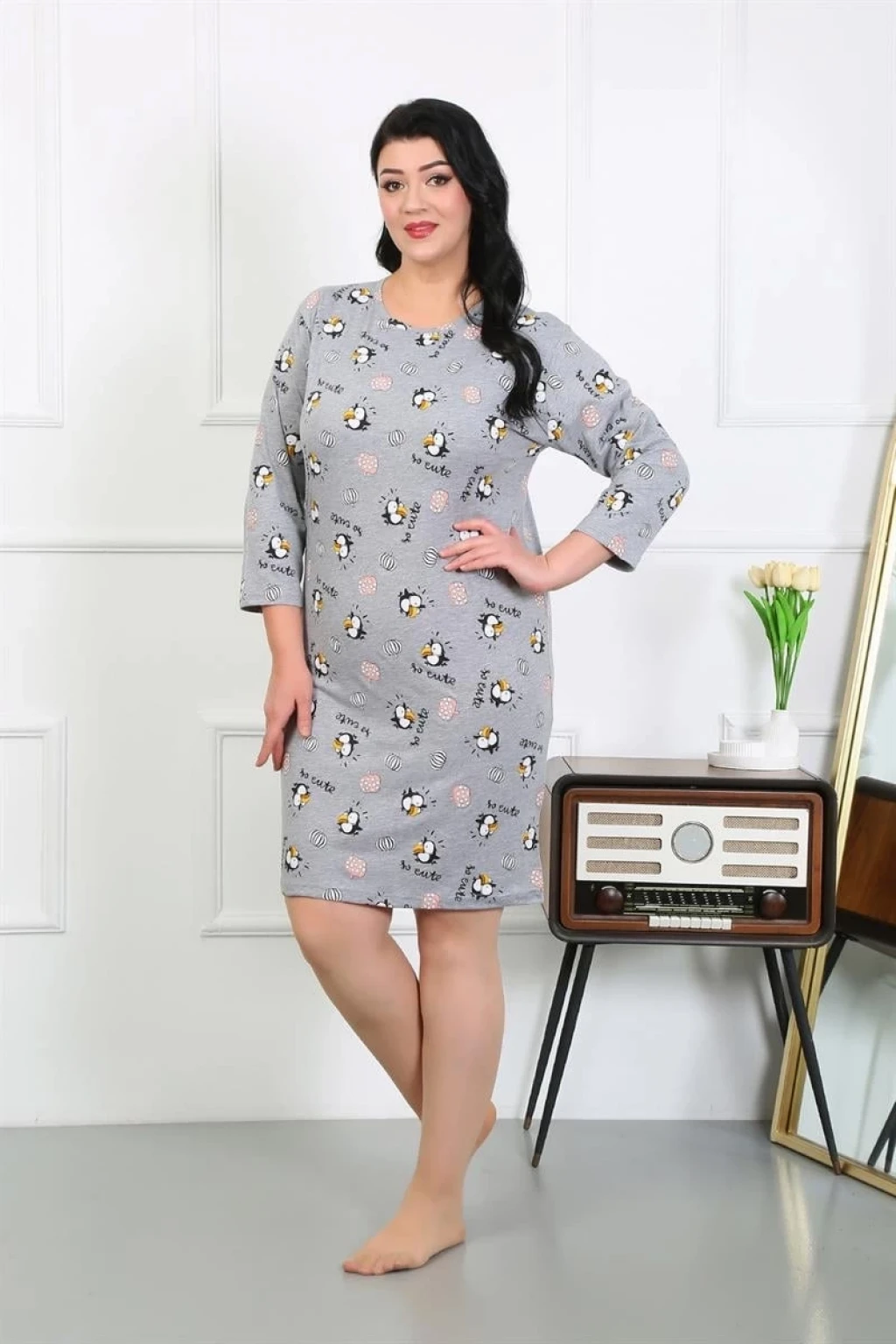 Çamaşır Kenti markasının şık ve konforlu Kadın Büyük Beden Penye Gecelik Ev Elbisesi Gri, rahatlığı ve şıklığı bir arada sunuyor.